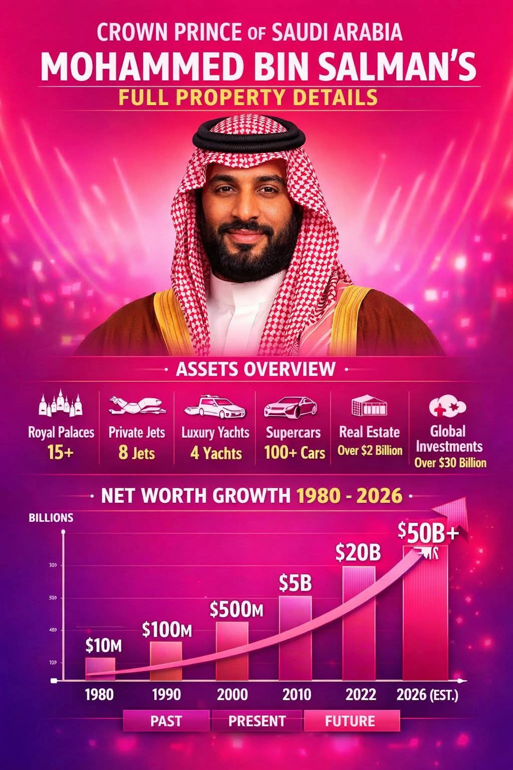 Crown Prince of Saudi Arabia – Property & Net Worth Growth (1980–2026)