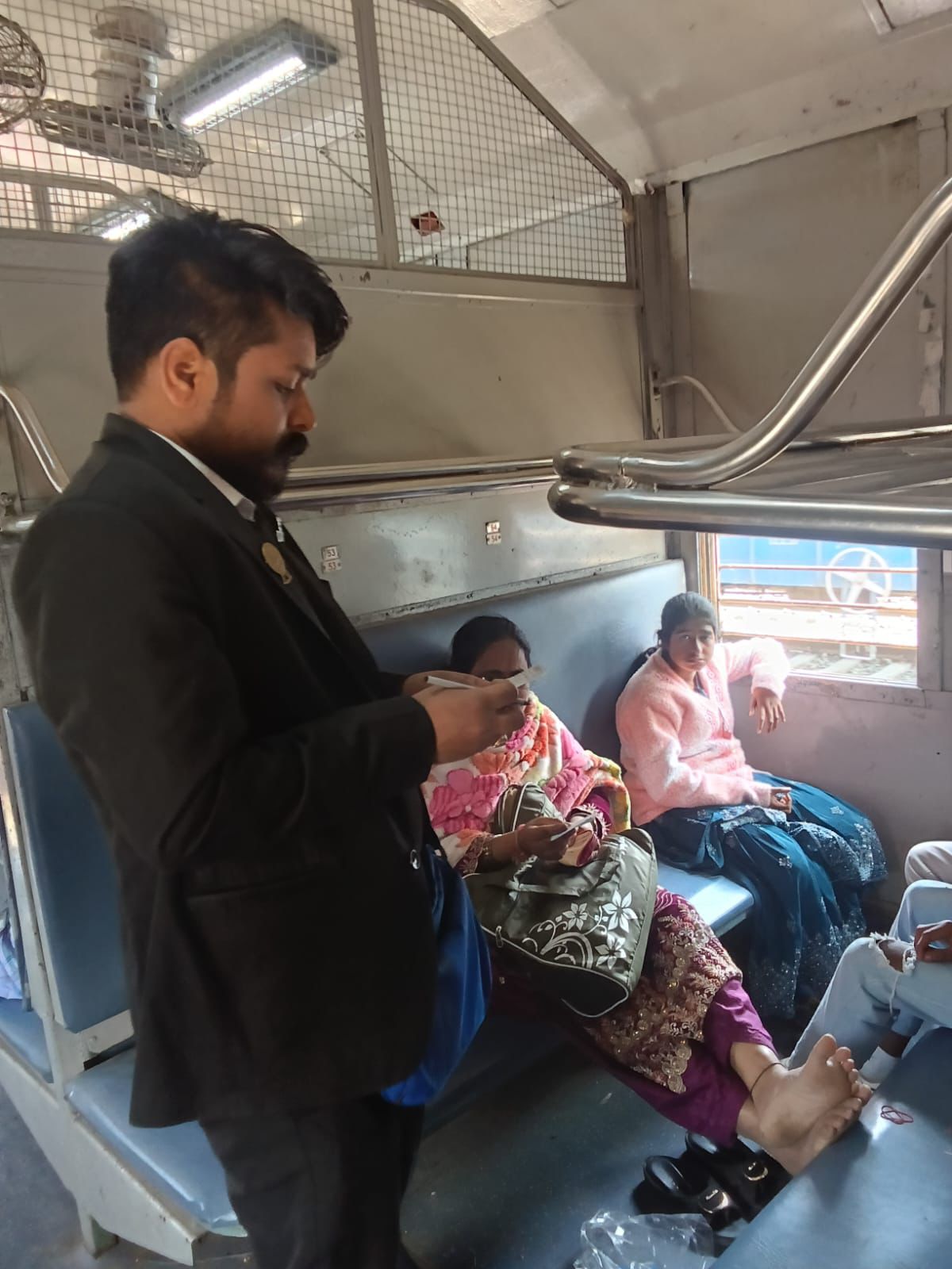 Tinpahar Passenger train was also thoroughly checked at Tinpahar. Further checking was conducted at Sahibganj and Bhagalpur stations and on trains running between Bhagalpur and Jamalpur sections, ensuring comprehensive enforcement across the route.