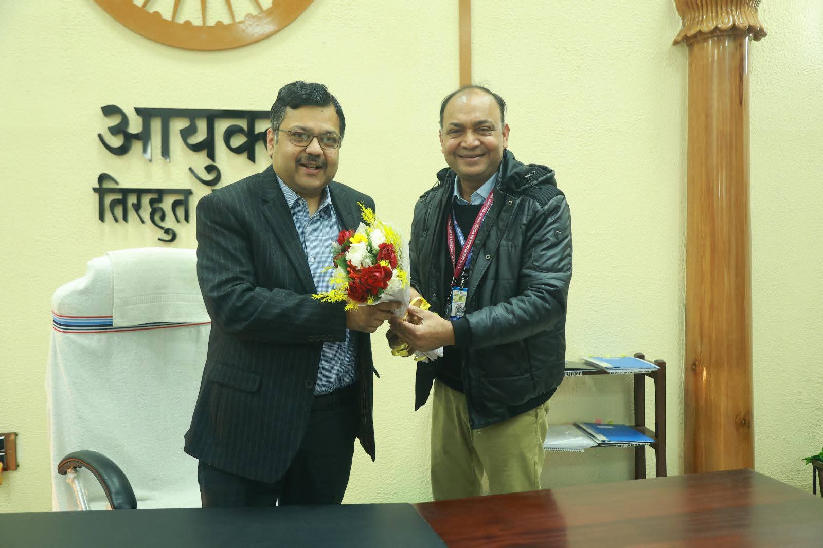 कार्यालय, मुजफ्फरपुर में विधिवत रूप से पदभार ग्रहण किया। पदभार ग्रहण का कार्य सादगीपूर्ण वातावरण में संपन्न हुआ, जिसमें जिला पदाधिकारी मुजफ्फरपुर श्री सुब्रत कुमार सेन, आयुक्त के सचिव श्री संदीप शेखर प्रियदर्शी सहित आयुक्त कार्यालय के विभिन्न विभागों के अधिकारी एवं कर्मी उपस्थित रहे। पदभार ग्रहण के उपरांत आयुक्त श्री सिंह ने प्रमंडल की जनता को नववर्ष की शुभकामनाएं एवं बधाई दी। उन्होंने कहा कि नया वर्ष सभी के जीवन में सुख, समृद्धि और शांति लेकर आए, यही उनकी कामना है। उन्होंने स्पष्ट रूप से कहा कि तिरहुत प्रमंडल की जनता की समस्याओं का समाधान करना सर्वोच्च प्राथमिकता है और इसके लिए सभी अधिकारी एवं कर्मी आपसी समन्वय , सक्रिय एवं तत्पर होकर टीम भावना के साथ कार्य करेंगे। आयुक्त ने कहा कि आम जनता की समस्याओं का समयबद्ध एवं गुणवत्तापूर्ण निष्पादन जरूरी है। उन्होंने लोक शिकायत निवारण प्रणाली को और अधिक प्रभावी और बेहतर बनाने पर बल देते हुए कहा कि शिकायतों का केवल औपचारिक निपटारा नहीं हो, बल्कि उनका वास्तविक एवं गुणवत्तापूर्ण समाधान सुनिश्चित किया जाना है। उन्होंने अधिकारियों को निर्देश दिया कि प्रत्येक शिकायत का गंभीरता से परीक्षण कर तय समय सीमा के भीतर निष्पादन किया जाए, ताकि जनता का प्रशासन पर विश्वास और मजबूत हो। श्री सिंह ने सरकार की नीतियों और योजनाओं को पूरी ईमानदारी, पारदर्शिता एवं जवाबदेही के साथ लागू करने की प्रतिबद्धता दोहराई। उन्होंने कहा कि लोक कल्याणकारी राज्य की अवधारणा को साकार करने के लिए सभी को मिलकर कार्य करना होगा। उन्होंने विकसित बिहार के संकल्प को पूरा करने हेतु सामूहिक एवं समन्वित प्रयास करने की आवश्यकता पर बल दिया। पदभार ग्रहण के पश्चात आयुक्त ने आयुक्त कार्यालय के विभिन्न विभागों का निरीक्षण किया। निरीक्षण के दौरान उन्होंने कार्यालयों की कार्यप्रणाली, अभिलेखों के संधारण, साफ-सफाई, कर्मचारियों की उपस्थिति तथा जनसुविधाओं का अवलोकन किया। उन्होंने पाया कि कुछ स्थानों पर व्यवस्थाओं में और सुधार की आवश्यकता है, जिस पर संबंधित अधिकारियों को आवश्यक दिशा-निर्देश दिए। उन्होंने कार्यालयीय कार्यों में तकनीक के अधिकतम उपयोग, फाइलों के शीघ्र निष्पादन तथा कार्य संस्कृति में अनुशासन और संवेदनशीलता लाने पर जोर दिया। अंत में आयुक्त गिरिवर दयाल सिंह ने कहा कि तिरहुत प्रमंडल के समग्र विकास, कानून-व्यवस्था, जनकल्याणकारी योजनाओं के प्रभावी क्रियान्वयन और जनता की समस्याओं के समाधान के लिए वे पूरी निष्ठा से कार्य करेंगे। उन्होंने सभी अधिकारियों और कर्मचारियों से अपेक्षा की कि वे टीमवर्क की भावना के साथ जनहित को सर्वोपरि रखते हुए कार्य करें, त