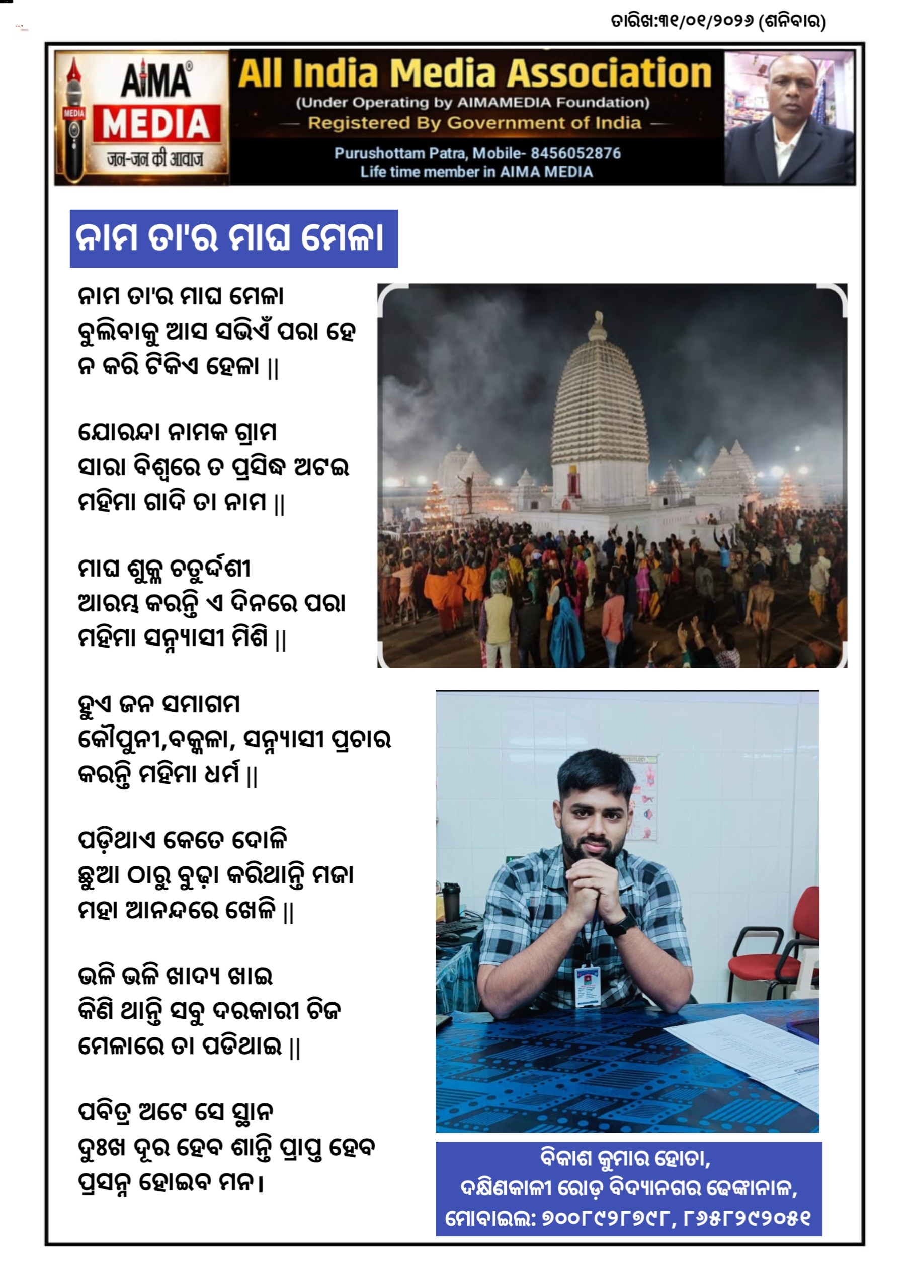रिपोर्टर – संजीत गोस्वामी अंग संदेश। व, ऑल इंडिया मीडिया एसोसिएशन जन-जन की आवाज जय हिंद, जय भारत 🇮🇳