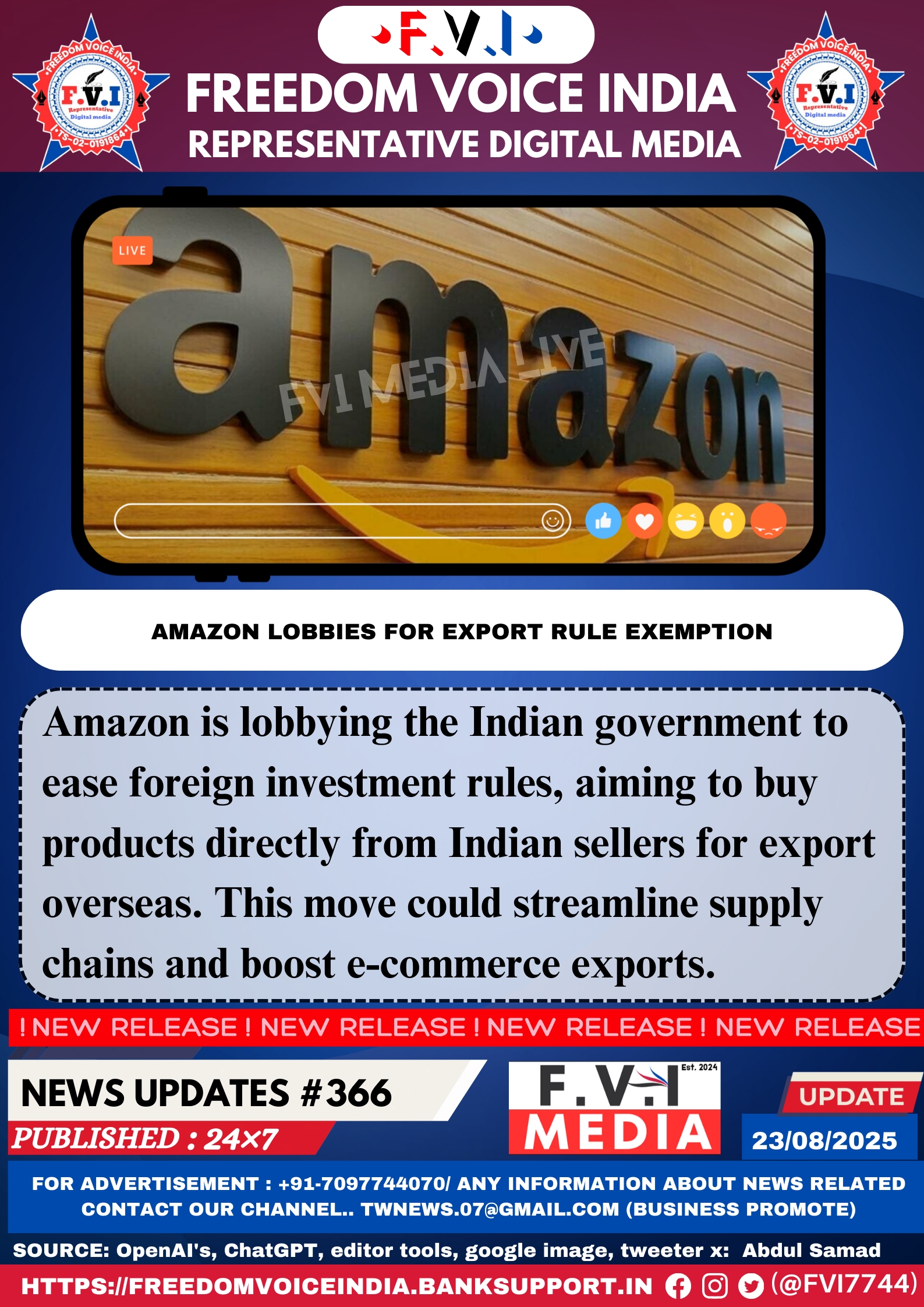 Amazon is lobbying the Indian government to ease foreign investment rules, aiming to buy products directly from Indian sellers for export overseas. This move could streamline supply chains and boost e-commerce exports.