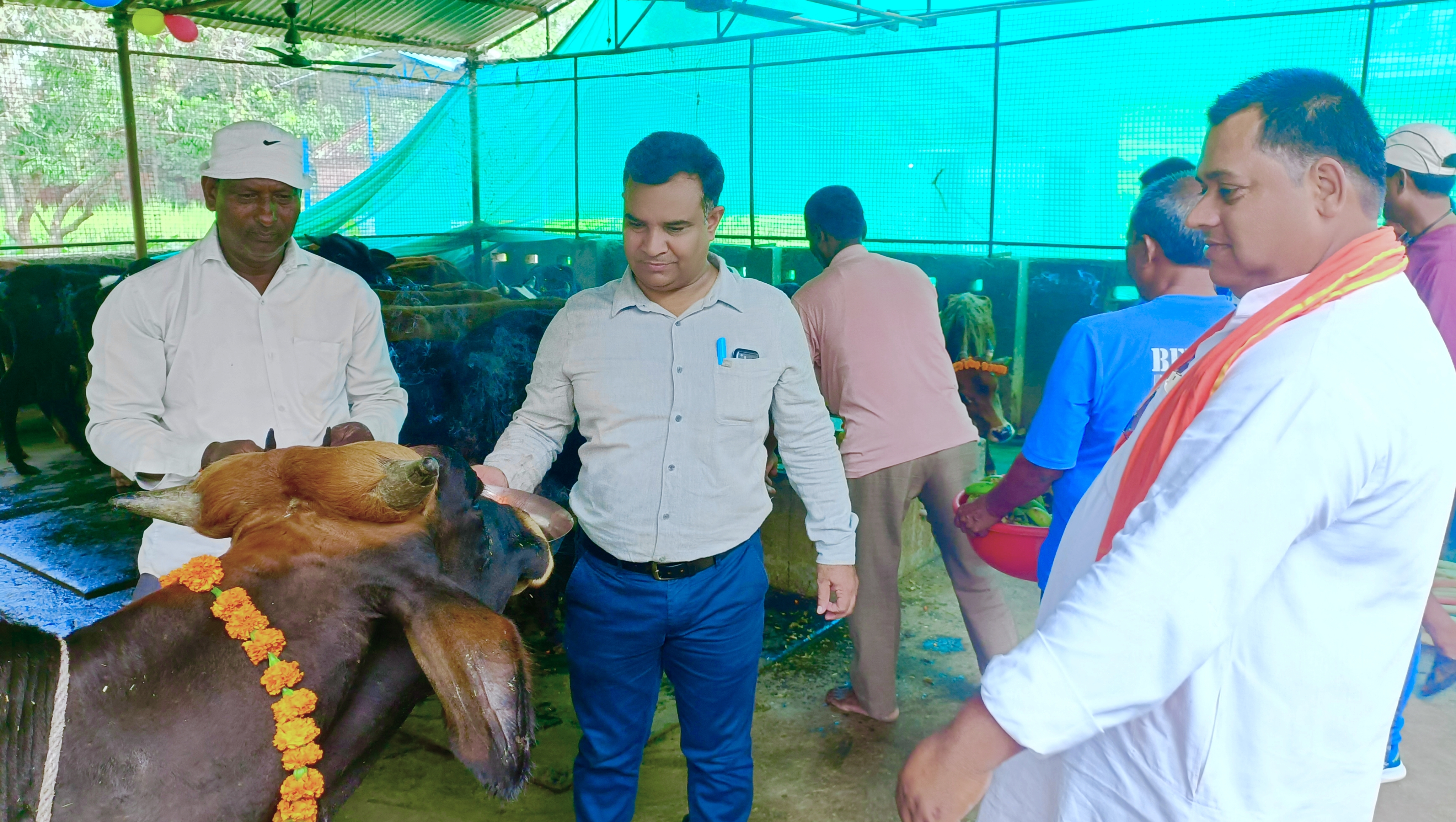 देवरिया। विकास खंड बैतालपुर के बलटिकरा में अस्थाई निराश्रित गौआश्रय स्थल पर गोवर्धन पूजा का समारोहपूर्वक आयोजन करने के लिए प्रातः काल से ही साफ सफाई किया गया एवं गुब्बारे से गौआश्रय को सजाया गया।इस अवसर पर महुआडीह के मंडल अध्यक्ष विजय कुमार पांडेय एवं पूर्व मंडल अध्यक्ष उमेश कुमार मल्ल ने गोपूजन करके सभी निराश्रित गोवंशीय पशुओं को चना, गुड़ एवं केला खिलाया। पशुधन प्रसार अधिकारी निशाकान्त तिवारी ने बताया कि गौरक्षा,पर्यावरण संरक्षण एवं लोक एकता के प्रतीक पर्व गोवर्धन पूजा एवं अन्य महत्वपूर्ण पर्वों के अवसर हर वर्ष सभी गौआश्रयों पर इस तरह का आयोजन किया जाता है जिससे गोसेवा के प्रति लोगों को प्रेरित किया जा सके। आयोजन में ग्राम सचिव नन्हें सिंह एवं ग्राम प्रधान प्रतिनिधि भोलू राय के साथ केयर टेकर सोनू राजभर,सुभाष चन्द्र एवं महेंद्र यादव शामिल रहे।