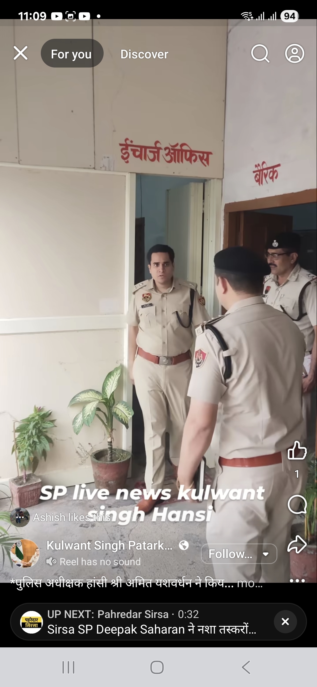 पुलिस अधीक्षक हांसी श्री अमित यशवर्धन ने किया चौकियों का औचक निरीक्षण, दिए आवश्यक निर्देश दिए।