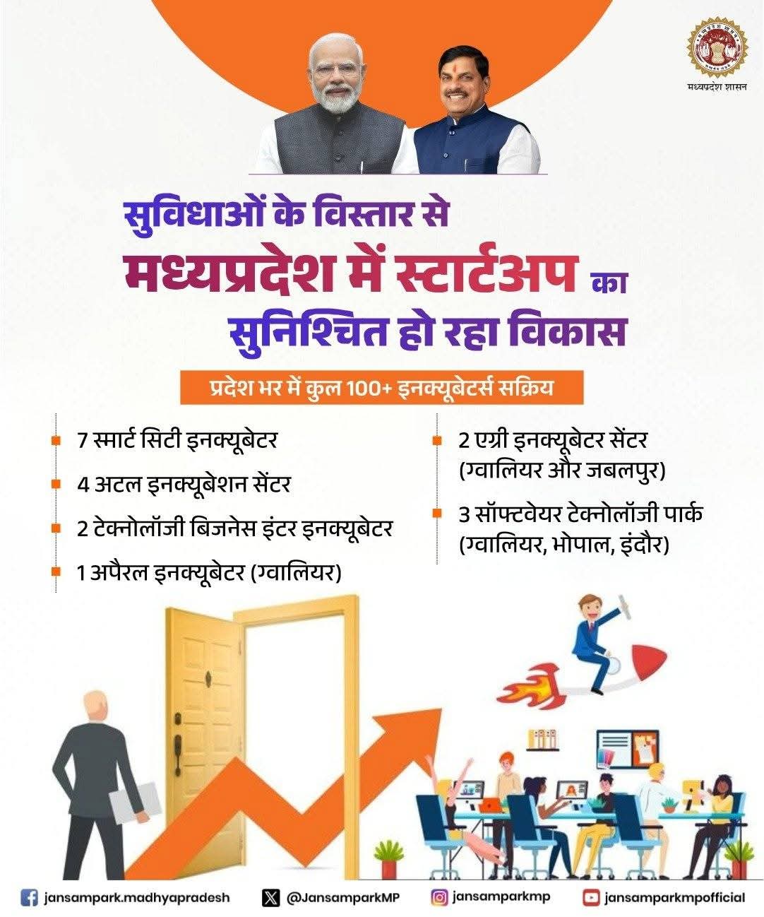 🔹प्रदेश में कुल 100+ इनक्यूबेटर्स सक्रिय