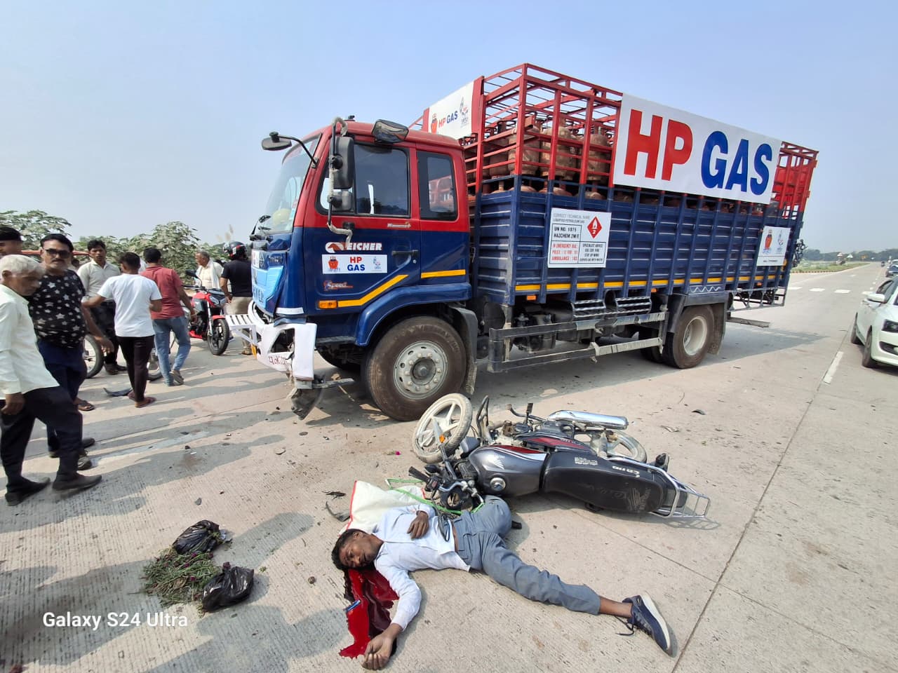 उन्नाव अचलगंज पचोडडा के पास गैस से लदा ट्रक ने बाइक सवार को मारी टक्कर जिससे बाइक सवार की मौके पर मौत हो गई