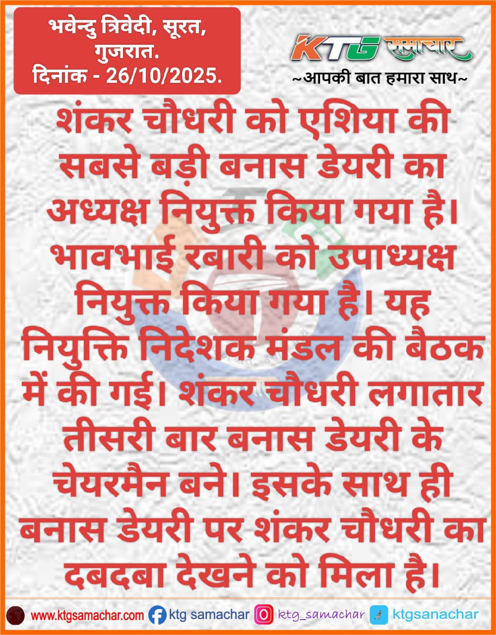 शंकर चौधरी को एशिया की सबसे बड़ी बनास डेयरी का अध्यक्ष नियुक्त किया गया है।