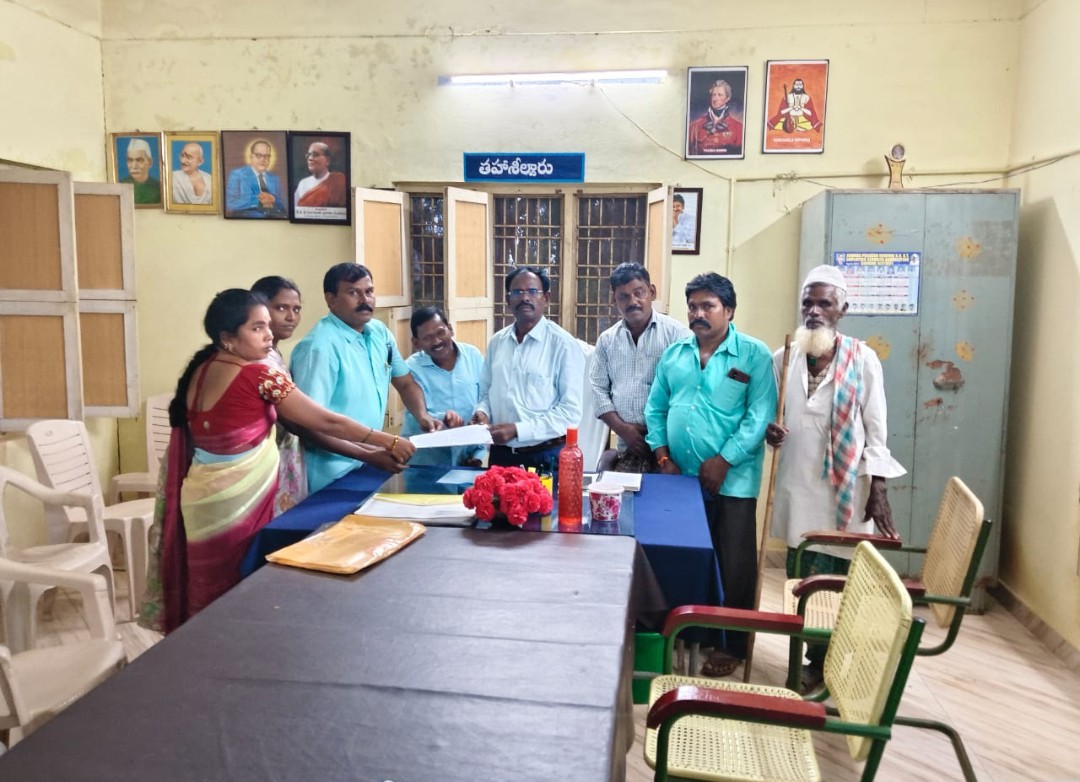 నంద్యాల జిల్లా లోని రుద్రవరము మండలం గ్రామానికి చెందిన ఎస్సీ కులానికి చెందిన వికలాంగుడు ఎన్ సుధాకర్ గారికి చిన్న కంబలూరు గ్రామంలో సర్వే నంబర్ 270 / 2, విస్తీర్ణము 3 ఎకరాలు గల భూమిని ప్రభుత్వం వారు 2006లో డి పట్టా పాస్ పుస్తకాలు ఇచ్చారు.. ఆ భూమి సాగు చేసుకునే జీవనం సాగించే క్రమంలో కొందరు అదే గ్రామానికి చెందిన భూకబ్జాదారులు ఆ భూమిని నకిలీ పట్టాలతో ఆక్రమించి కోర్టుకు కేసు వేయగా ఆంధ్రప్రదేశ్ గౌరవ న్యాయస్థానం కోర్టు వారు సుధాకర్ వికలాంగునికి అనుకూలంగా తీర్పు ఇచ్చారు అయితే నకిలిపటాలతో భూమిని ఆక్రమించిన వారిపై ఇంతవరకు నంద్యాల జిల్లా ఎస్పీ గారిని ,నంద్యాల జిల్లా కలెక్టర్ గారిని పలుసార్లు అర్జీ రూపంలో విన్నవించుకున్న న్యాయం జరగకపోగా.. వికలాంగుల ఆదరణ సేవా సమిత్ రాష్ట్ర అధ్యక్షులు మరియు దాసు గారి అధ్యక్షతన పలువురు వికలాంగులతో రుద్రవరం తాసిల్దార్ గారిని కలిసి పొలానికి సంబంధించిన విషయం అంతా సవివరంగా తెలియజేయడం జరిగింది అయితే రెవెన్యూ అధికారులు కలెక్టర్ గారికి తప్పుడు ఎండార్స్మెంట్ ఇవ్వడం జరిగింది.. ఆ ఎండార్స్మెంట్ కూడా తప్పు అని సంబంధిత తాసిల్దార్ గారికి వివరించడం జరిగింది అన్ని రెవెన్యూ రికార్డులు పరిశీలించి భూకబ్జాదారులపై నకిలీ పట్టాలతో సుధాకర్ భూముల ఆక్రమించిన వారిపై వికలాంగుల చట్టం 2016 మరియు సివిల్ క్రిమినల్ కేసు నమోదు చేయాలని అలా చేయని పక్షంలో రుద్రవరం తాసిల్దార్ ఎదుట అన్ని వికలాంగుల సంఘాల మరియు ప్రజా సంఘాల నాయకుల మద్దతు తో భారీగా తాసిల్దార్ ఆఫీస్ ఎదుట ధర్నా చేస్తామని ఈ విషయంపై ఆంధ్రప్రదేశ్ రాష్ట్ర డిప్యూటీ ముఖ్యమంత్రి గౌరవనీయులు కొణిదెల పవన్ కళ్యాణ్ గారిని త్వరలో కలవనున్నట్లు మరియదాసు గారు తెలియజేశారు కావున వికలాంగులకు న్యాయం చేసేంతవరకు అన్ని వికలాంగుల సంఘాల మద్దతు ఉంటుందని ఆయన తెలియజేశారు ఈ కార్యక్రమంలో ఆదరణ సేవా సమితి వికలాంగుల రాష్ట్ర అధ్యక్షులు జజారి మరి దాస్ గారు మన నంద్యాల జిల్లా మహిళా వికలాంగుల అధ్యక్షురాలు కె శివమ్మ మరియు ఎన్ సుధాకర్ రుద్రవరం మండల అధ్యక్షులు అబ్దుల్లా సత్తార్ ఎల్లప్ప సులోచన పాల్గొని35 కేజీల రేషన్ కార్డులు మరి ఇంటి పట్టాలు అను సమస్యల పైన తాసిల్దార్ గారిని అడగడం జరిగింది సానుకూలంగా స్పందించి వీటిని అన్నిటిని ప్రభుత్వానికి పంపించి నీకు న్యాయం జరిగేలా చూస్తానని ఆమె ఇవ్వడం జరిగింది