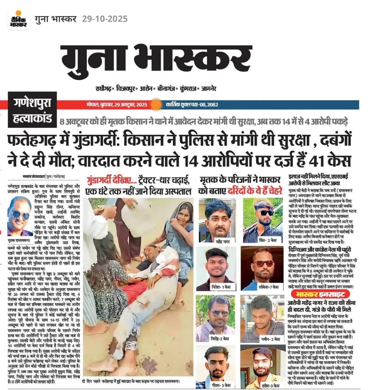 अभी 2 दिन पहले मध्य प्रदेश के ग्राम गणेशपुर चर्चित हत्याकांड आप सभी ने सुना होगा यह हत्या एक किसान की नहीं अपितु संपूर्ण देश की हत्या हुई है।