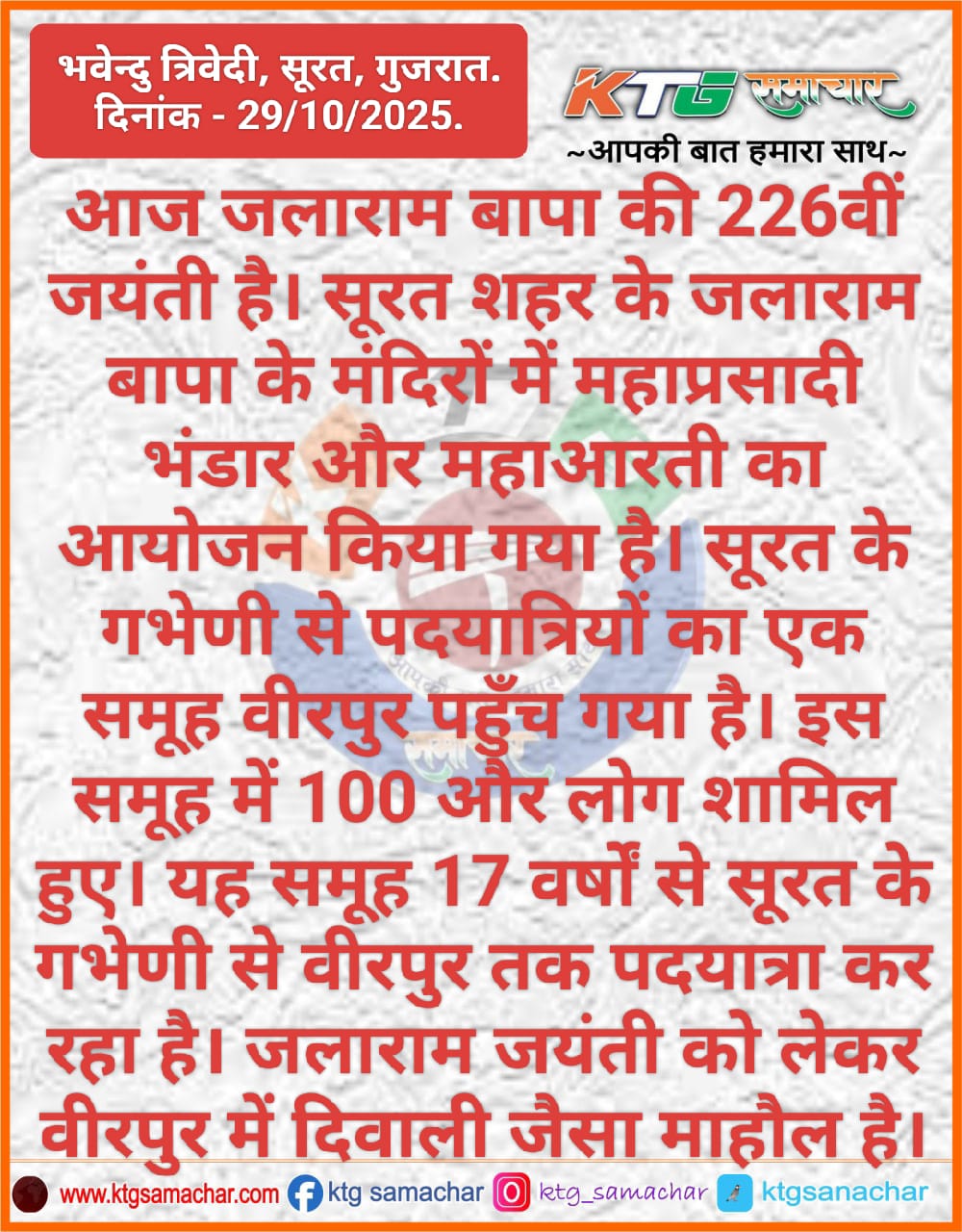 आज जलाराम बापा की 226वीं जयंती है।