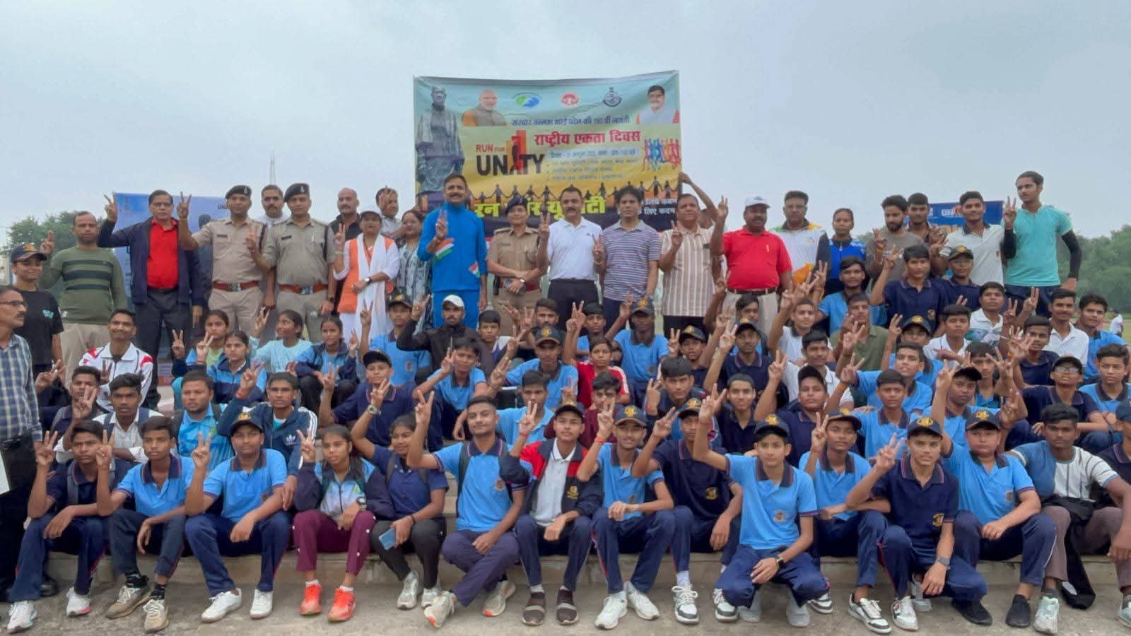 प्रतिभागियों ने राष्ट्रीय एकता, भाईचारे और “एक भारत, श्रेष्ठ भारत” के संदेश वाले बैनर लेकर दौड़ लगाई।