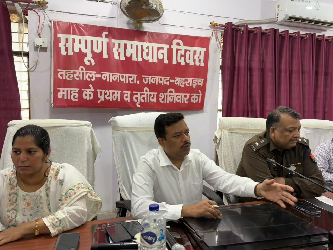 बहराइच 01 नवम्बर। जन समस्याओं के त्वरित निस्तारण हेतु प्रत्येक माह के प्रथम और तृतीय शनिवार को आयोजित होने वाले सम्पूर्ण समाधान दिवसों की कड़ी में तहसील नानपारा में आयोजित सम्पूर्ण समाधान दिवस के दौरान पुलिस अधीक्षक राम नयन सिंह, मुख्य विकास अधिकारी मुकेश चन्द्र, उप जिलाधिकारी मोनालिसा जहरी, जिला विकास अधिकारी राज कुमार व अन्य अधिकारियों के साथ आये हये फरयादियों की समस्याओं की गंभीरता पूर्वक सुनवाई करते हुए पसंबंधित अधिकारियों को समयबद्धत्ता के साथ गुणवत्ता परक निस्तारण के निर्देश दिये गये। सम्पूर्ण समाधान दिवस में प्राप्त 61 प्रार्थना पत्रों में से 03 प्रार्थना पत्रों का मौके पर निस्तारण किया गया। इस अवसर पर सीडीओ ने एसडीएम के साथ गर्भवती महिलाओं की गोदभराई व बच्चों को अन्न प्रासन्न भी कराया।
