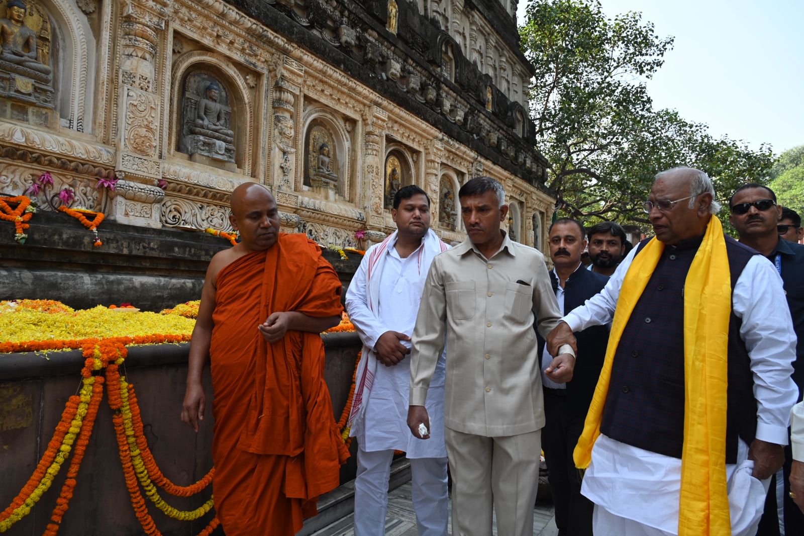 कांग्रेस के राष्ट्रीय अध्यक्ष मल्लिकार्जुन खरगे ने भगवान बुद्ध को टेका मत्था