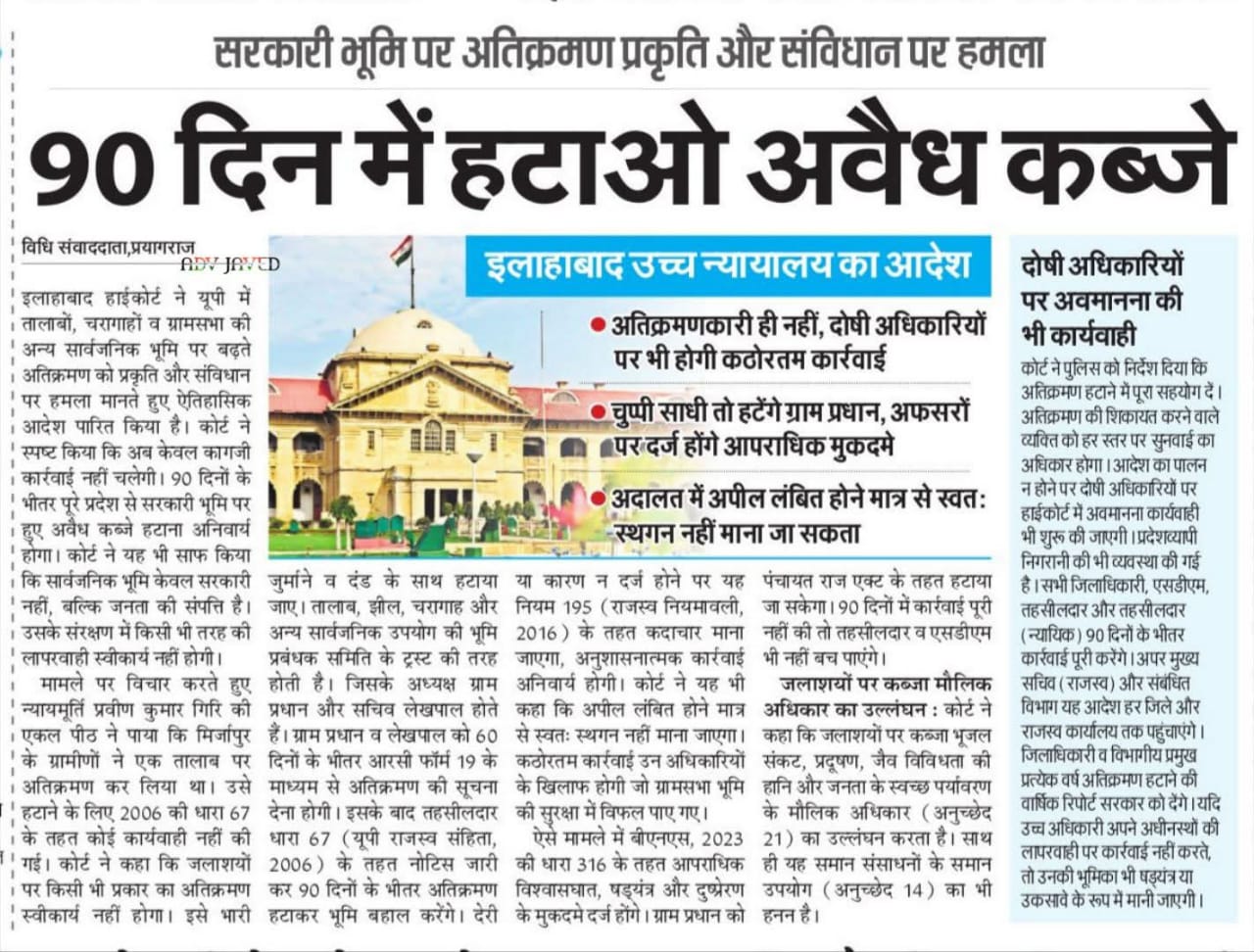 ग्राम पंचायतों में स्वच्छता, कूड़ा प्रबंधन, पेयजल, जलसंरक्षण पर्यावरण जैसे महत्वपूर्ण परियोजनाओं पर सरकार सख्त फिर भी अभी तक अधिकांश गांवों में समस्या का निजात नहीं वहीं उच्च न्यायालय इलाहाबाद द्वारा भी गढ्ढे, सार्वजनिक भूमि को अतिक्रमण मुक्त कराने का आदेश जारी किया करते हुए सार्वजनिक भूमि, सड़क किनारे अतिक्रमण मुक्त हेतु अभियान चलाकर जीवन के सुरक्षा पर कुछ लोग के कारण समस्या का समाधान का हल संबंधित अधिकारियों को संज्ञान लेकर आवश्यक कार्रवाई सुनिश्चित करने की पहल होना चाहिए।
