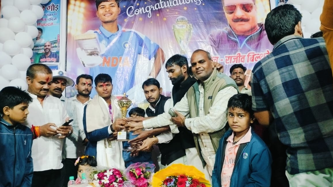 ओबीसी महासभा टीकमगढ़ ,छतरपुर के द्वारा सामूहिक रूप से कल घुवारा नगर आगमन पर रात्रि में भारतीय महिला क्रिकेटर सुश्री क्रांति सिंह गौंड का ट्रॉफी 🏆 भेंट कर स्वागत किया। जब ओबीसी महासभा टीकमगढ़ जिला प्रभारी रविन्द्र सिंह लोधी और उनके साथियों ने क्रांति गौंड को ट्रॉफी भेंट की तो उनके चेहरे पर दौगुनी ख़ुशी बढ़ गई उस ट्रॉफी के साथ क्रांति ने खूब जमकर ठहाके लगाए और उसे बार बार लोगों को दिखाया पूरे नगर में बह ट्रॉफी चर्चा का विषय बनी रही।