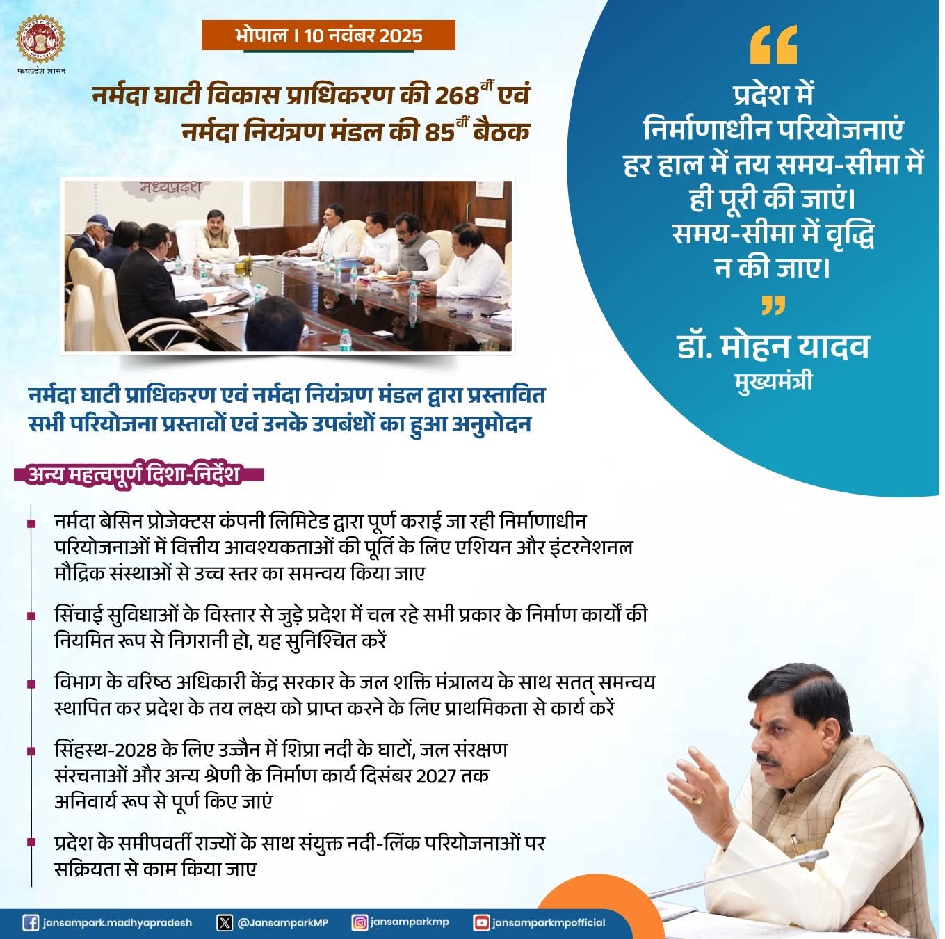 नर्मदा घाटी विकास प्राधिकरण की 268वीं एवं नर्मदा नियंत्रण मंडल की 85वीं बैठक