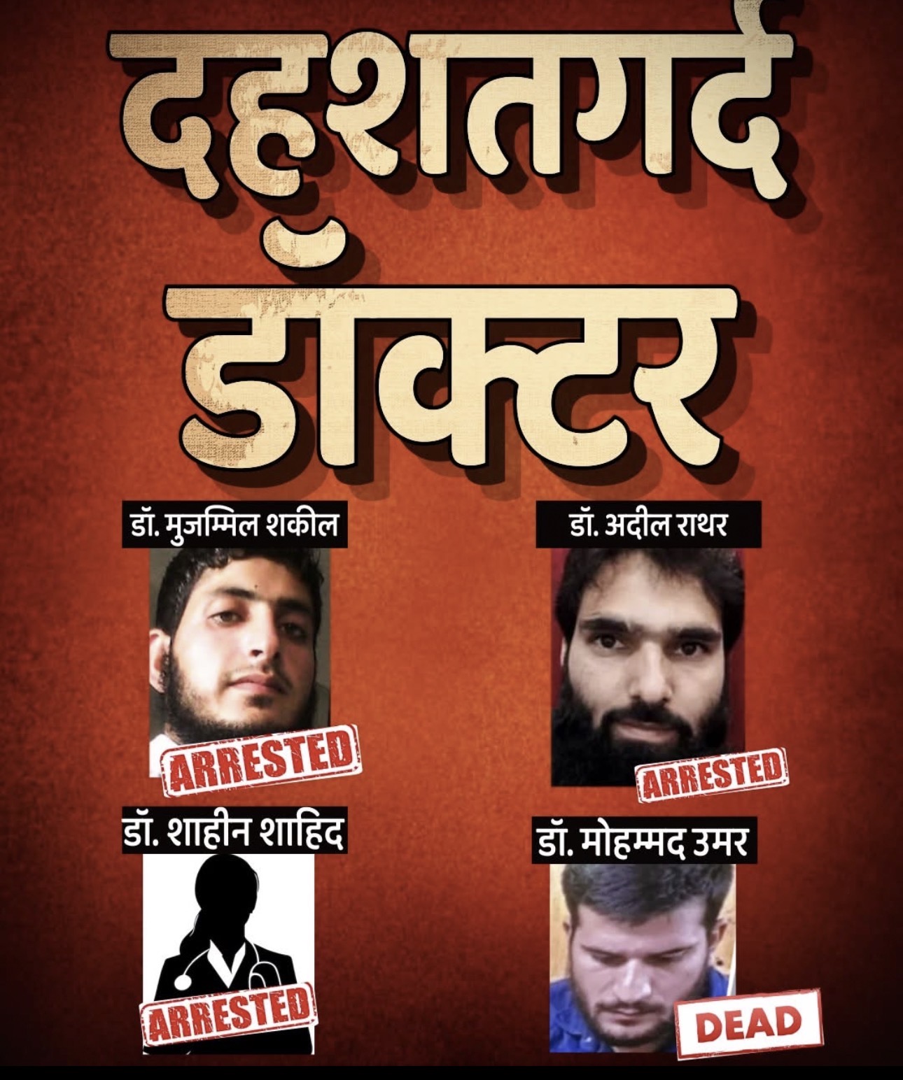 दिल्ली में लाल किले के पास धमाकों के पीछे एक नहीं चार-चार डॉक्टरों की हैवानियत सामने आ रही है।