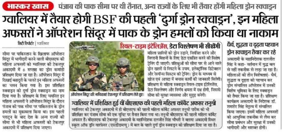 ग्वालियर में तैयार होगी BSF की पहली दुर्गा ड्रोन स्क्वाड्रन