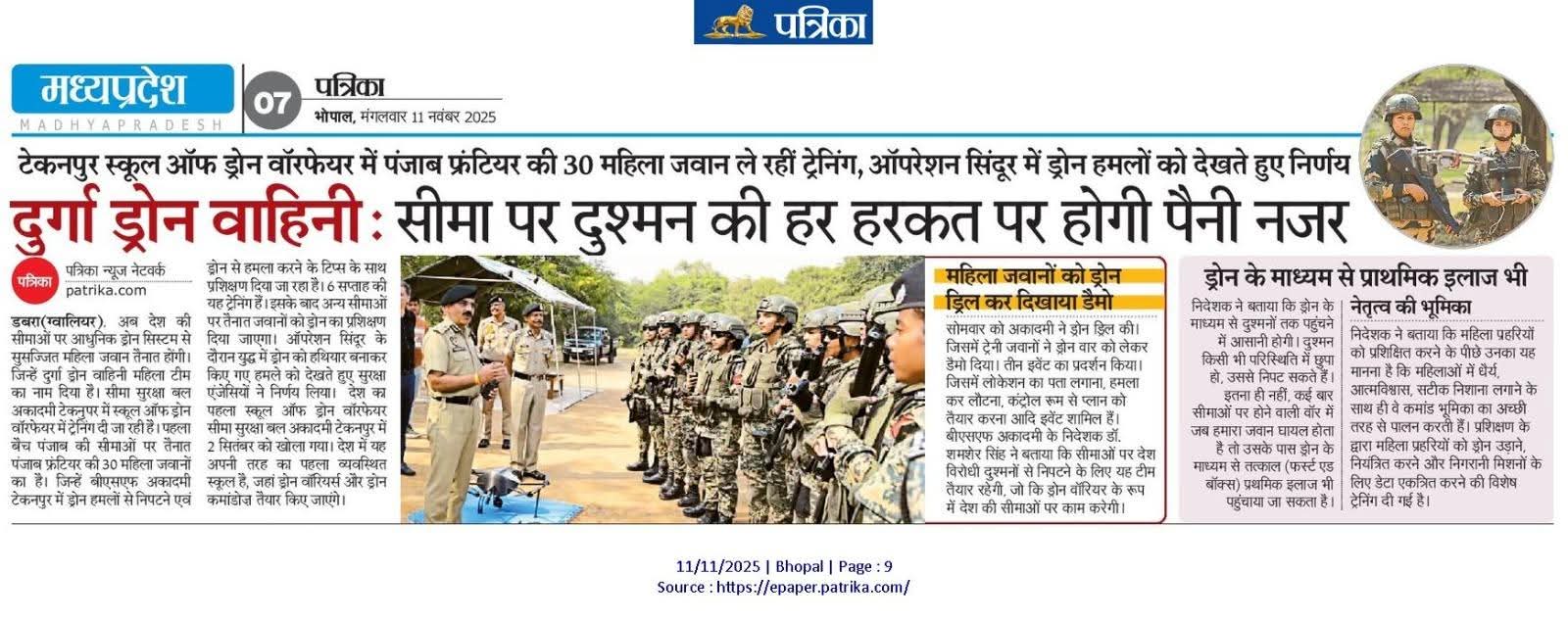 ग्वालियर में तैयार होगी BSF की पहली ‘दुर्गा ड्रोन स्क्वाड्रन’