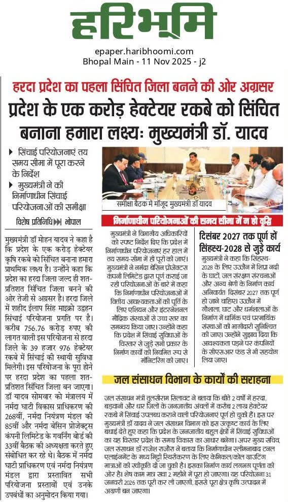 हरदा प्रदेश का पहला सिंचित जिला बनने की ओर अग्रसर सिंचाई सुविधाओं का विस्तार ही प्रदेश के समग्र विकास का है आधार : मुख्यमंत्री डॉ. मोहन यादव#JansamparkMP