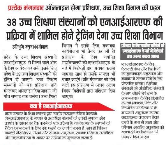 38 उच्च शिक्षण संस्थानों को #एनआईआरएफ की प्रक्रिया में शामिल होने ट्रेनिंग देगा #उच्च_शिक्षा_विभाग
