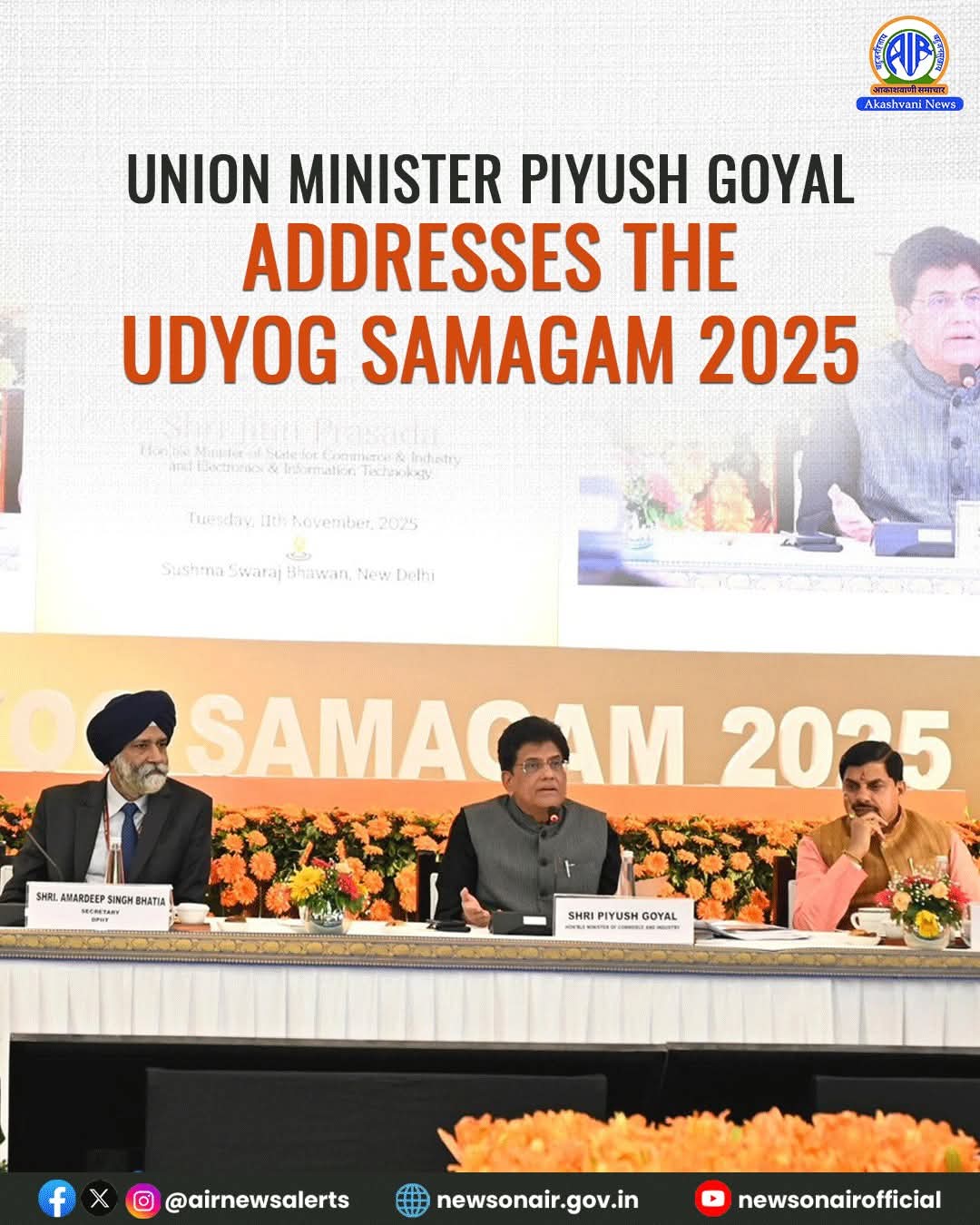 Union Commerce and Industry Minister Piyush Goyal addresses the Udyog Samagam 2025 in New Delhi.