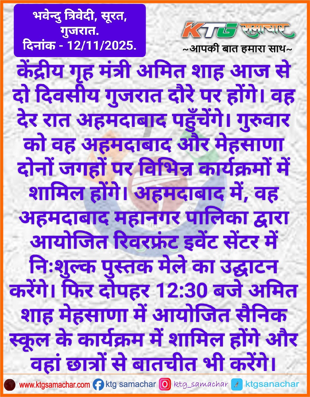 केंद्रीय गृहमंत्री अमित शाह आज से दो दिवसीय गुजरात दौरे पर है।