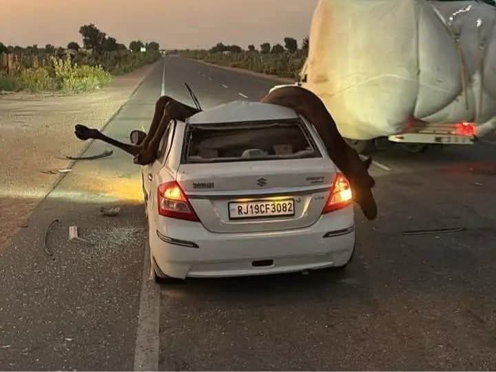 देचू-फलौदी मार्ग पर कार-ऊंट की टक्कर, हादसे के बाद ऊंट कार में फंसा, चालक सुरक्षित