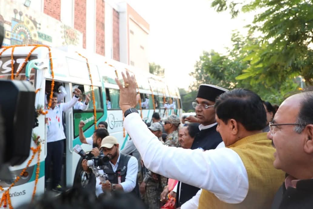मुख्यमंत्री जी ने तीन बसों को हरी झंडी दिखाकर दल को शुभकामनाएं दीं।
