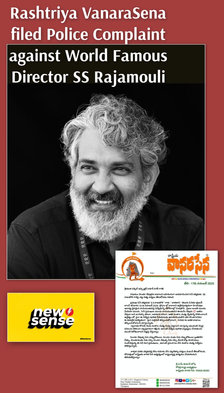 ఇటీవల వారణాసి చిత్రం కార్యక్రమంలో హనుమంతుడిపై రాజమౌళి చేసిన వ్యాఖ్యలు హిందువుల మనోభావాలు దెబ్బ తీసే విధంగా ఉన్నాయని సరూర్ నగర్ పోలీసులకు ఫిర్యాదు చేసిన రాష్ట్రీయ వానరసేన