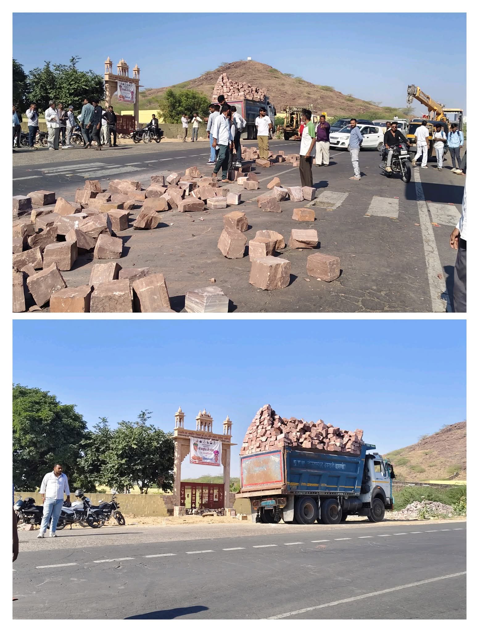 बालेसर (जोधपुर) — ओवरलोड डंपर से गिरते पत्थरों ने ली बाइक सवार की जान लगभग