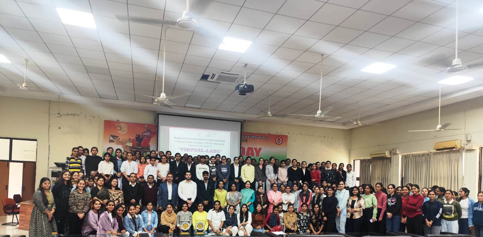 खानपुर कलां, 18 नवंबर। शिक्षा मंत्रालय, भारत सरकार की एक महत्वपूर्ण पहल ‘वर्चुअल लैब्स प्रोजेक्ट’ उच्च शिक्षा में तकनीकी और प्रयोगात्मक शिक्षा को सुदृढ़ बनाने की दिशा में तेज़ी से आगे बढ़ रही है। इस परियोजना का उद्देश्य देशभर के विद्यार्थियों को वर्चुअल माध्यम से ऐसे प्रयोगों तक पहुँच प्रदान करना है, जो सामान्यतः उन्नत प्रयोगशालाओं में ही संभव होते हैं।  इसी कड़ी में आज भगत फूल सिंह महिला विश्वविद्यालय में शिक्षा मंत्रालय के तत्वाधान में आई आई टी दिल्ली द्वारा वर्चुअल लैब कार्यशाला का आयोजन किया गया। कार्यशाला में रिसोर्स पर्सन के तौर पर आई आई टी दिल्ली के सीनियर एग्जीक्यूटिव इंजिनियर उबैद मुस्ताक व सीनियर एग्जीक्यूटिव इंजिनियर शिवम् यादव ने छात्राओं को ‘वर्चुअल लैब्स प्रोजेक्ट’ के बारे में विस्तार से बताया। उबैद मुस्ताक ने बताया कि वर्चुअल लैब्स के माध्यम से विद्यार्थी भौतिकी, रसायन, जीव विज्ञान, कंप्यूटर विज्ञान, इलेक्ट्रॉनिक्स, मैकेनिकल इंजीनियरिंग, सिविल इंजीनियरिंग सहित अनेक विषयों में ऑनलाइन प्रयोग कर सकते हैं। इस तकनीक की विशेषता यह है कि विद्यार्थी किसी भी स्थान से, किसी भी समय, सुरक्षित और सटीक तरीके से प्रयोगों का अभ्यास कर सकते हैं।अपने संबोधन में शिवम दुबे ने बताया कि इस परियोजना का संचालन देश के प्रमुख तकनीकी संस्थानों जैसे आईआईटी के सहयोग से किया जा रहा है, जिससे सामग्री की गुणवत्ता और प्रयोगों की वैज्ञानिक निष्पक्षता सुनिश्चित होती है। यह पहल न केवल दूरदराज के क्षेत्रों के विद्यार्थियों के लिए अत्यंत लाभकारी है, बल्कि महंगी प्रयोगशालाओं की अनुपलब्धता वाले संस्थानों के लिए भी बड़ी सहूलियत सिद्ध हो रही है। उन्होंने बताया कि वर्चुअल लैब्स परियोजना के माध्यम से शिक्षा मंत्रालय 21वीं सदी की डिजिटल शिक्षा को और अधिक प्रभावी, सुलभ और विद्यार्थी-केंद्रित बनाने की दिशा में निरंतर प्रयासरत है।कार्यशाला की को-ओर्डिनेटर डॉ अंशु भारद्वाज ने बताया कि इस कार्यशाला में फिजिक्स , इलेक्ट्रॉनिक्स एंड कम्युनिकेशन इंजीनियरिंग , कंप्यूटर साइंस इंजीनियरिंग , इनफार्मेशन टेक्नोलॉजी व महिला बहुतकनीकी के कंप्यूटर साइंस व इलेक्ट्रॉनिक साइंस की 300 छात्राओं ने भाग लिया। फोटो कैप्शन :-03 कार्यशाला में प्रतिभागी छात्राओं के साथ आयोजक व वक्ता।