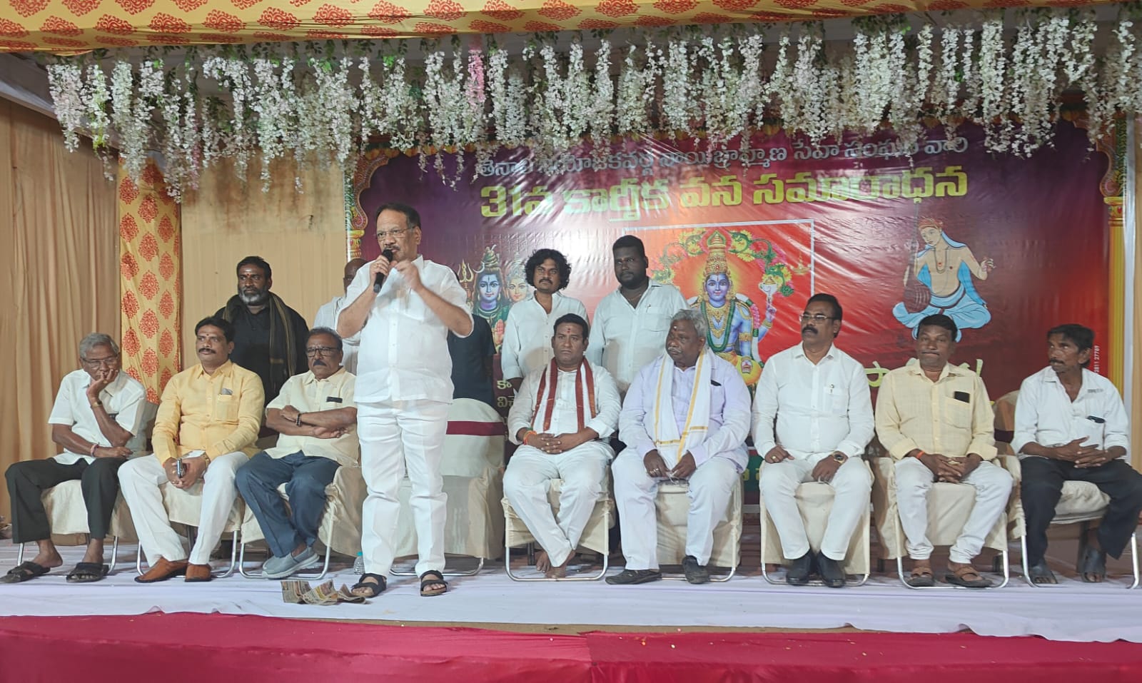 నాయీబ్రాహ్మణ కార్పొరేషన్ చైర్మన్ రుద్రకోట సదాశివమ్ మాట్లాడుతూ కార్తీక మాసంలో ఎంతో భక్తిశ్రద్ధలతో వన సమారాధన నిర్వహించడం బంతి భోజనాలు చేయటం ఎంతో శుభ పరిణామం అని అన్నారు ఆచార వ్యవహారాలు పాటించటంలో నియమనిబంధనలతో క్రమశిక్షణతో మెలగటం నాయి బ్రాహ్మణులకు సాధ్యమని పేర్కొన్నారు.కూటమి ప్రభుత్వం నా యిబ్రాహ్మణులకు 200యూనిట్స్ ఉచిత విద్యుత్తు దేవాలయాలలో పనిచేసే షరకులకు 20,000 నుంచి 25వేల రూపాయలు వరకు అందించడం వంటి అనేక సహకారాలు అందిస్తుందని వాటన్నింటినీ నాయీబ్రాహ్మణులు అందిపుచ్చుకోవాలని పిలుపునిచ్చారు. అనేకమంది నాట్య విద్యార్థినులు చక్కగా నాట్య ప్రదర్శనలు ఇచ్చారు.