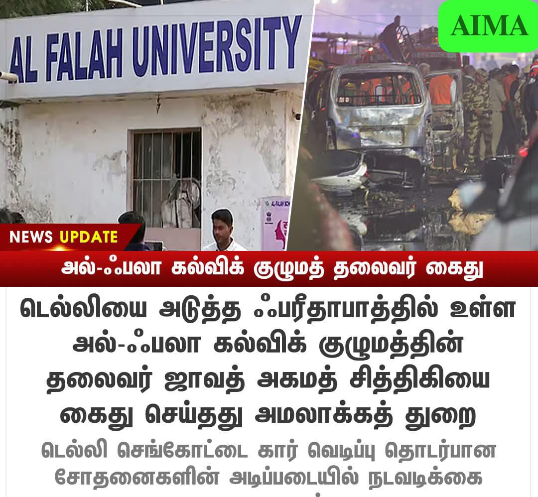 #NEWSUPDATE || அல்-ஃபலா கல்விக் குழுமத் தலைவர் கைது |