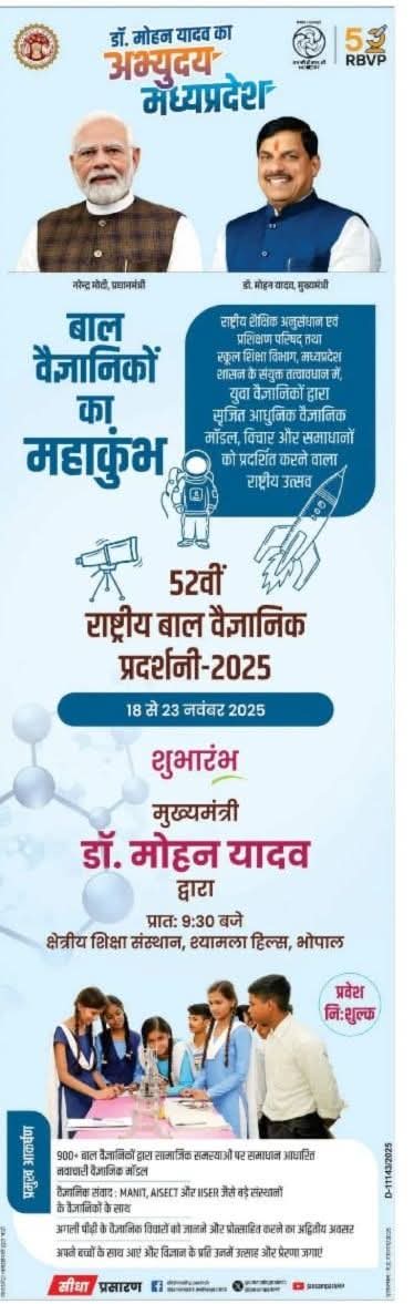 #CMMadhyaPradesh #MadhyaPradesh #Bhopal #JansamparkMP #राष्ट्रीय_बाल_वैज्ञानिक_प्रदर्शनी_2025