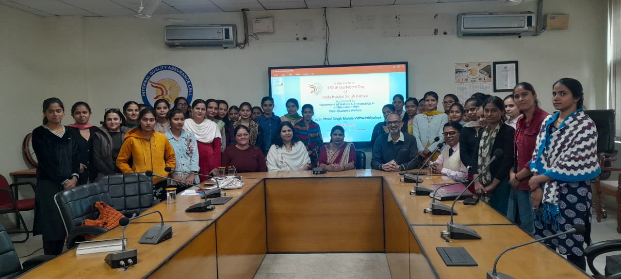 खानपुर कलां -19 नवंबर। भगत फूल सिंह महिला विश्वविद्यालय के इतिहास एवं पुरातत्व विभाग व डीन स्टूडेंट वेलफेयर के संयुक्त तत्वावधान में दादा कुशाल सिंह दहिया जी के 350वें शहादत दिवस के उपलक्ष्य में एक श्रद्धांजलि कार्यक्रम आयोजित किया गया।