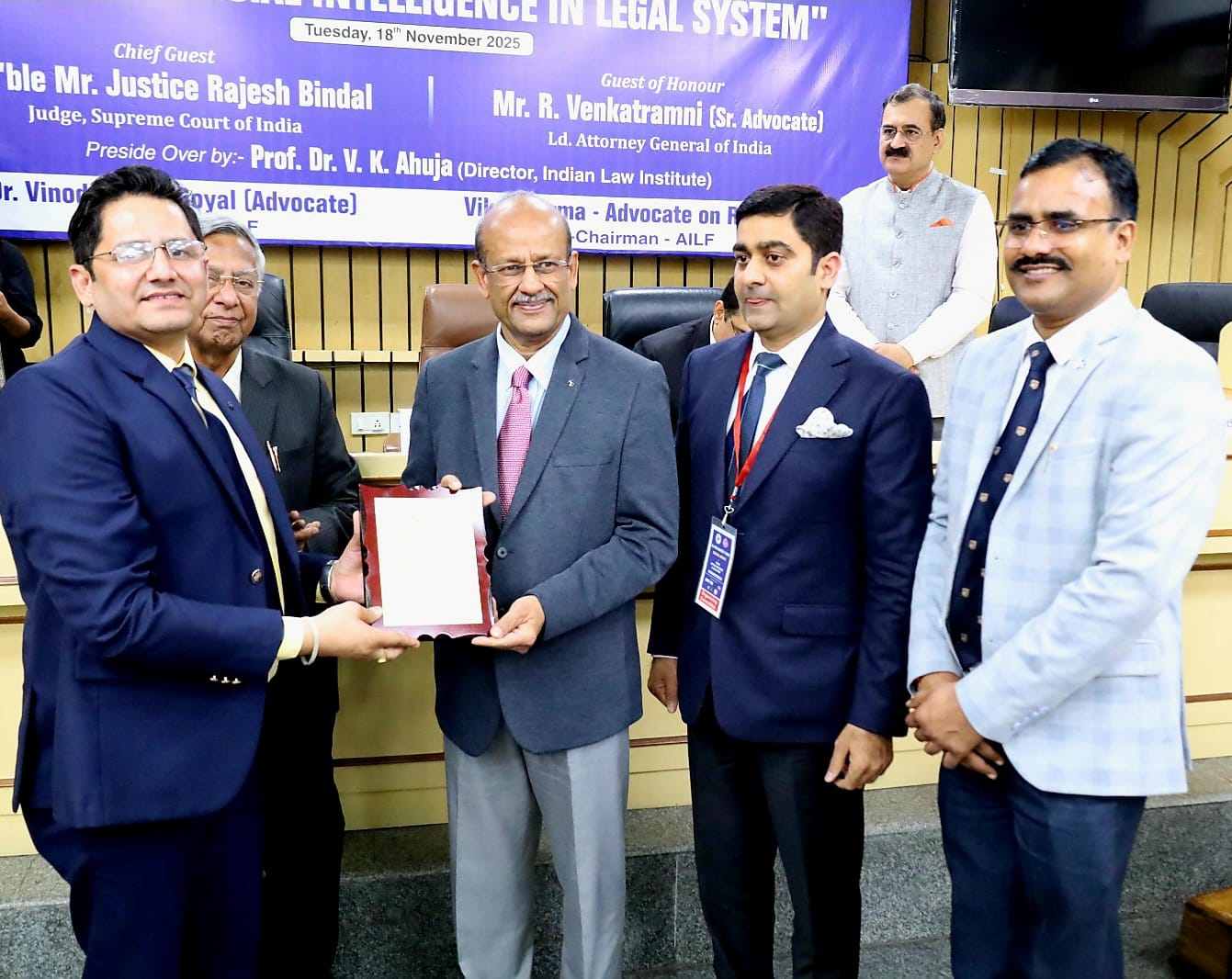 ऑल इण्डिया लाॅ फोरम, भारतीय विधि संस्थान, सर्वोच्च न्यायालय परिसर के संयुक्त तत्वाँधान में आयोजित ’’राष्ट्रीय संगौष्ठी एवं सम्मान समारोह’’ का शुभारम्भ मुख्य अतिथि सुप्रीम कोर्ट नयी दिल्ली के वरिष्ठ न्यायधीश जस्टिस माननीय राकेश बिन्दल, अटार्नी जनरल ऑफ़ इण्डिया श्री आर0 वेंकटरमणी, इण्डियन लाॅ इंस्टीट्यूट के निदेशक डाॅ0 वी0के0 आहूजा, अन्तर्राष्ट्रीय साहित्यकार एवं शिक्षाविद् दिनेश रघुवंशी, प्रतिकुलाधिपति डाॅ0 राजीव त्यागी आदि ने सरस्वती माँ की प्रतिमा के सन्मुख दीप प्रज्जवलित करके किया।
