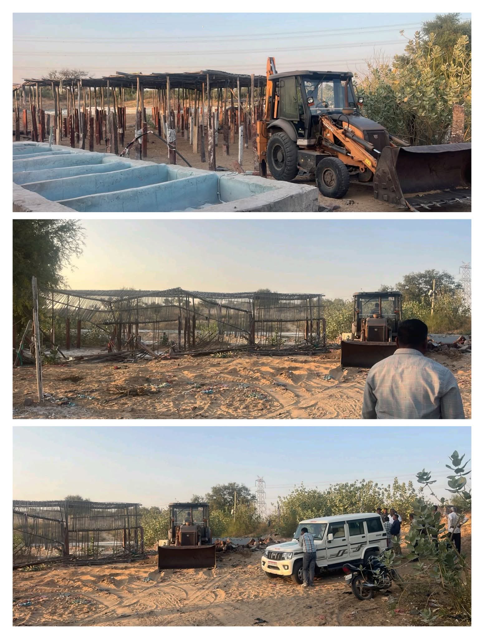 भाडू चारणान में 4 अवैध कपड़ा धुलाई फैक्ट्री ध्वस्त कीप्रशासन एवं प्रदूषण नियंत्रण मंडल की संयुक्त कार्यवाही।