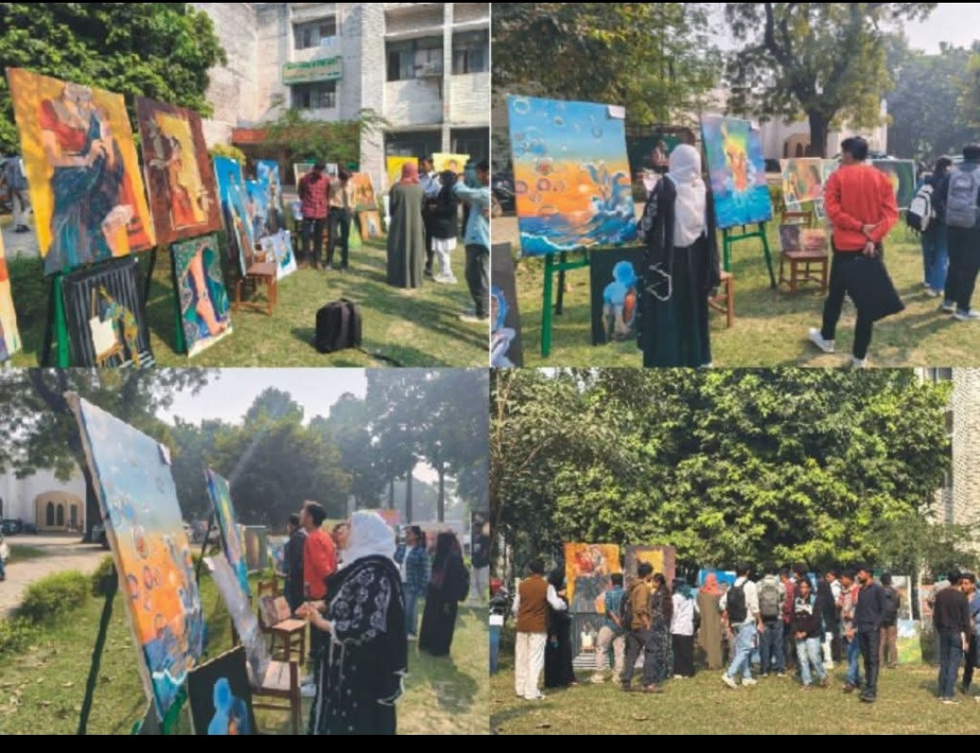 Aligarh, 19 November: The Department of Fine Arts, Aligarh Muslim University (AMU), organized a vibrant one-day Open-Air Art Exhibition cum Display of Paintings featuring the works of first-semester students of the Master of Visual Arts (MVA) programme. The exhibition, held on the department premises, drew enthusiastic participation from students, faculty members, and art enthusiasts.