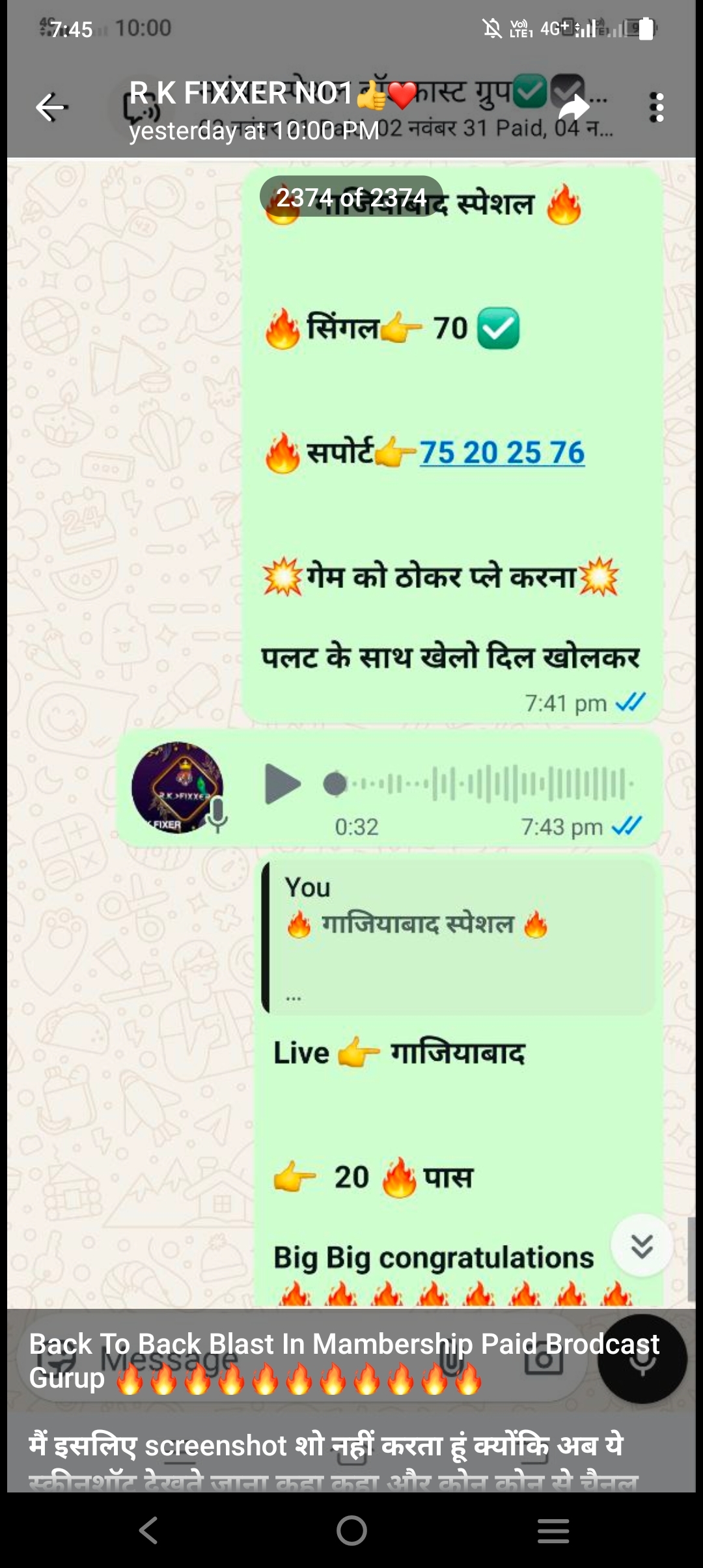 मेरे सभी प्रियजन साथियों और भाइयों अगर आपको कोई सटे कंपनी ग्रुप मैं जोड़ने के लिए पैसे मांगते है तो मत देना ये सब फ्रायड है और आपके पैसे ले कर आपको ग्रुप मैं गेम नहीं भेजेंगे। इन्होंने जाली ग्रुप बनाए होते है जिसमें जाली स्क्रीनशॉट भेज कर लोगों को ठगते है। ऐसा ही एक स्क्रीनशॉट आपके साथ शेयर कर रहा हु।