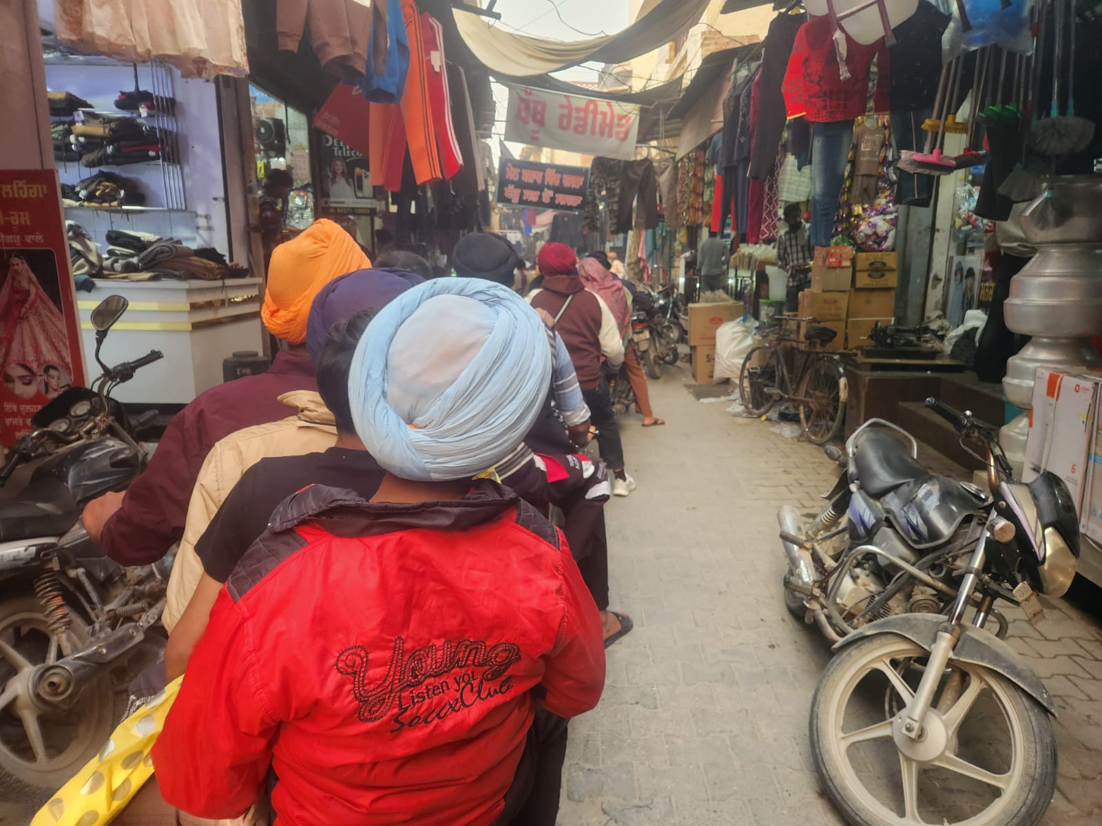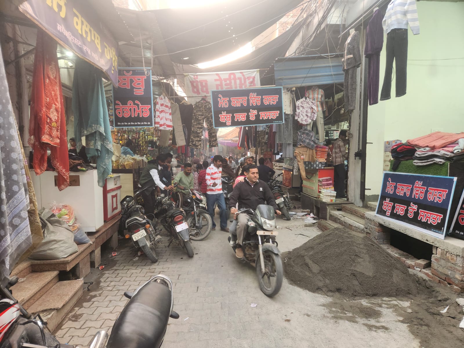 मल्लनवाला बाज़ार में जाम के कारण लोगों का गुजरना मुश्किल
