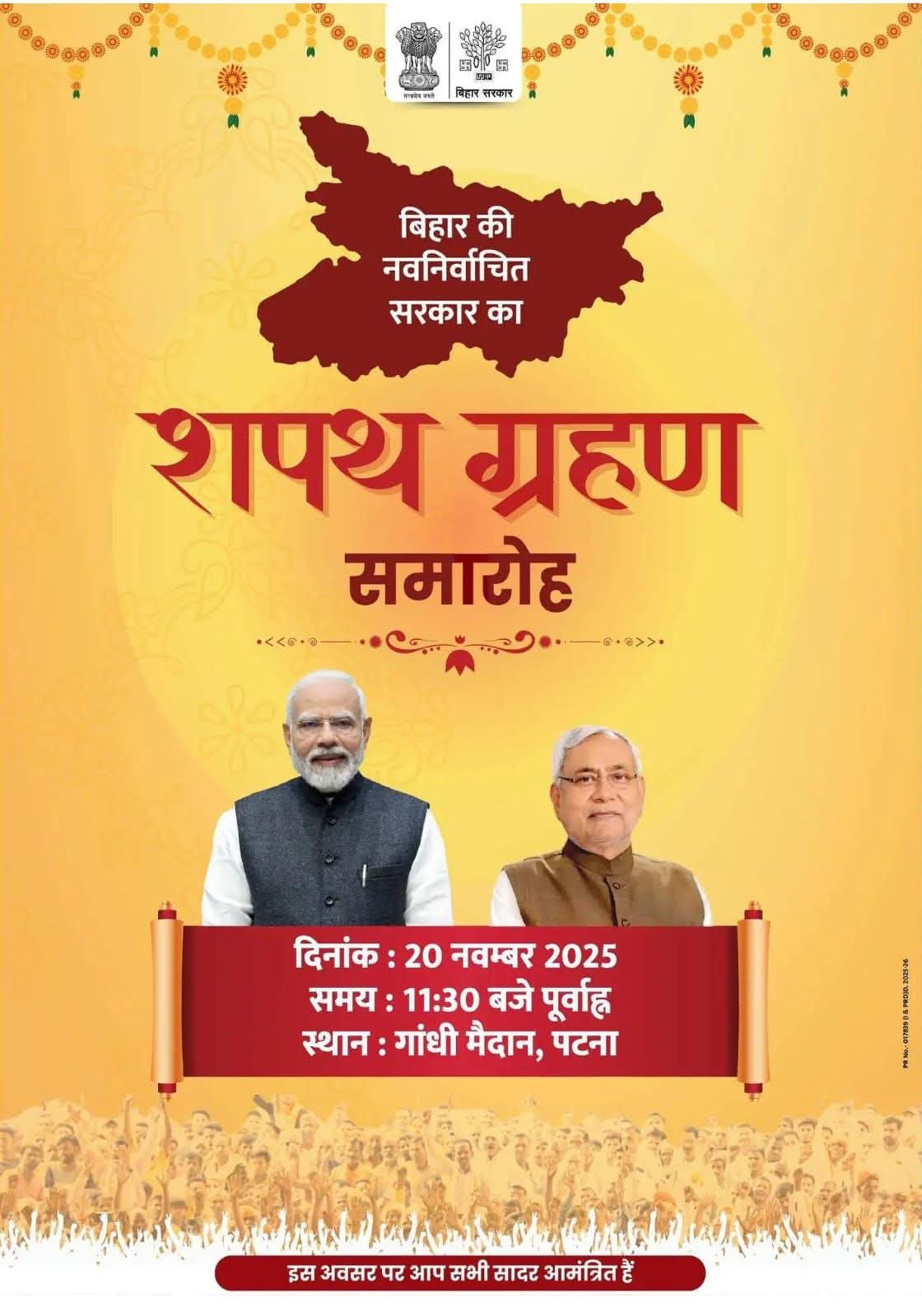 जिसके लिए पटना जिला प्रशासन ने पूरी तैयारी कर ली है !,बिहार की नवनिर्वाचित एनडीए सरकार के आज शपथ ग्रहण समारोह का आयोजन 11:30 बजे पूर्वाह्न से पटना के