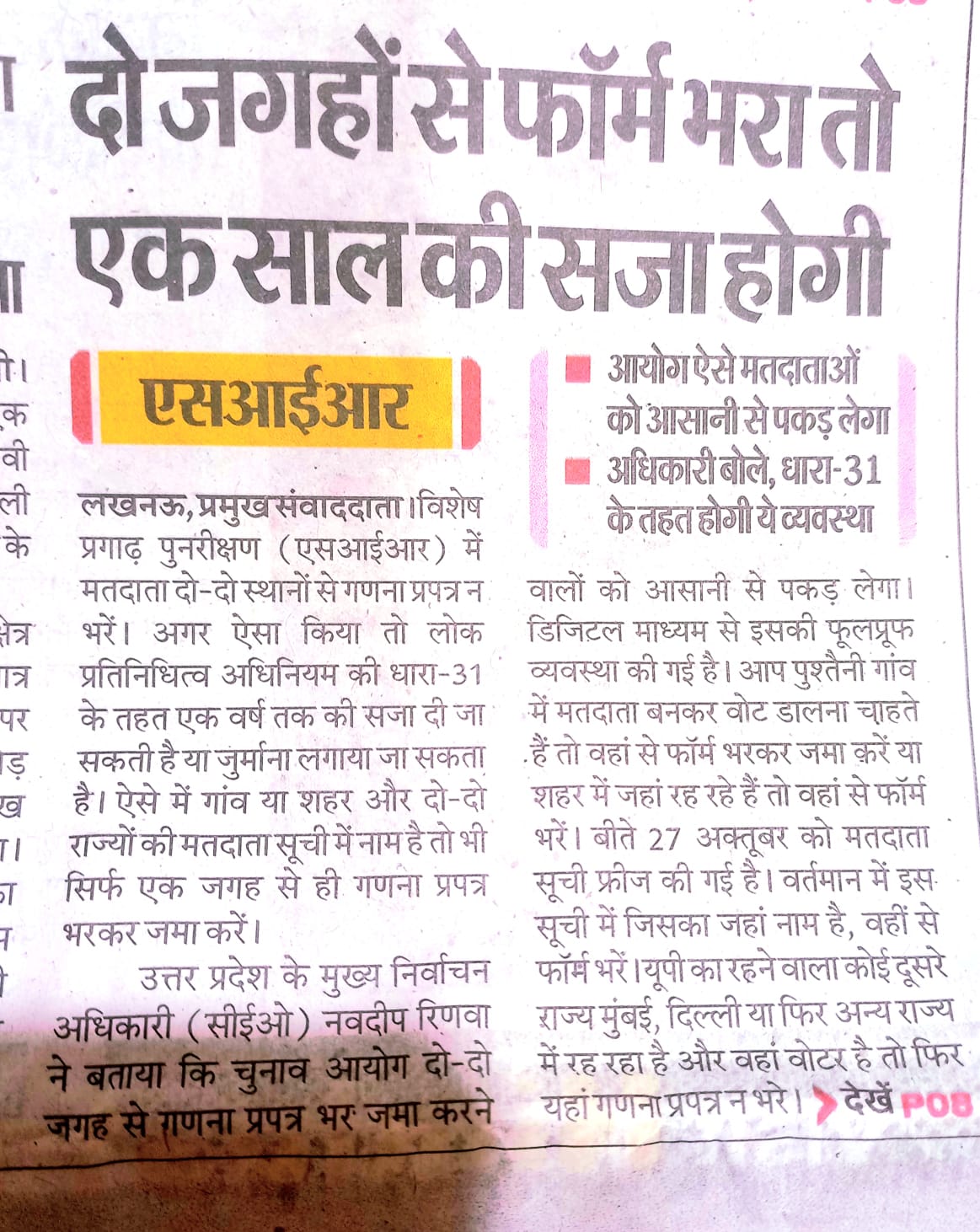 *आप SIR फर्म भरते समय साफ साफ मोबाइल नंबर एवं आधार नंबर जरूर लिखिएगा*