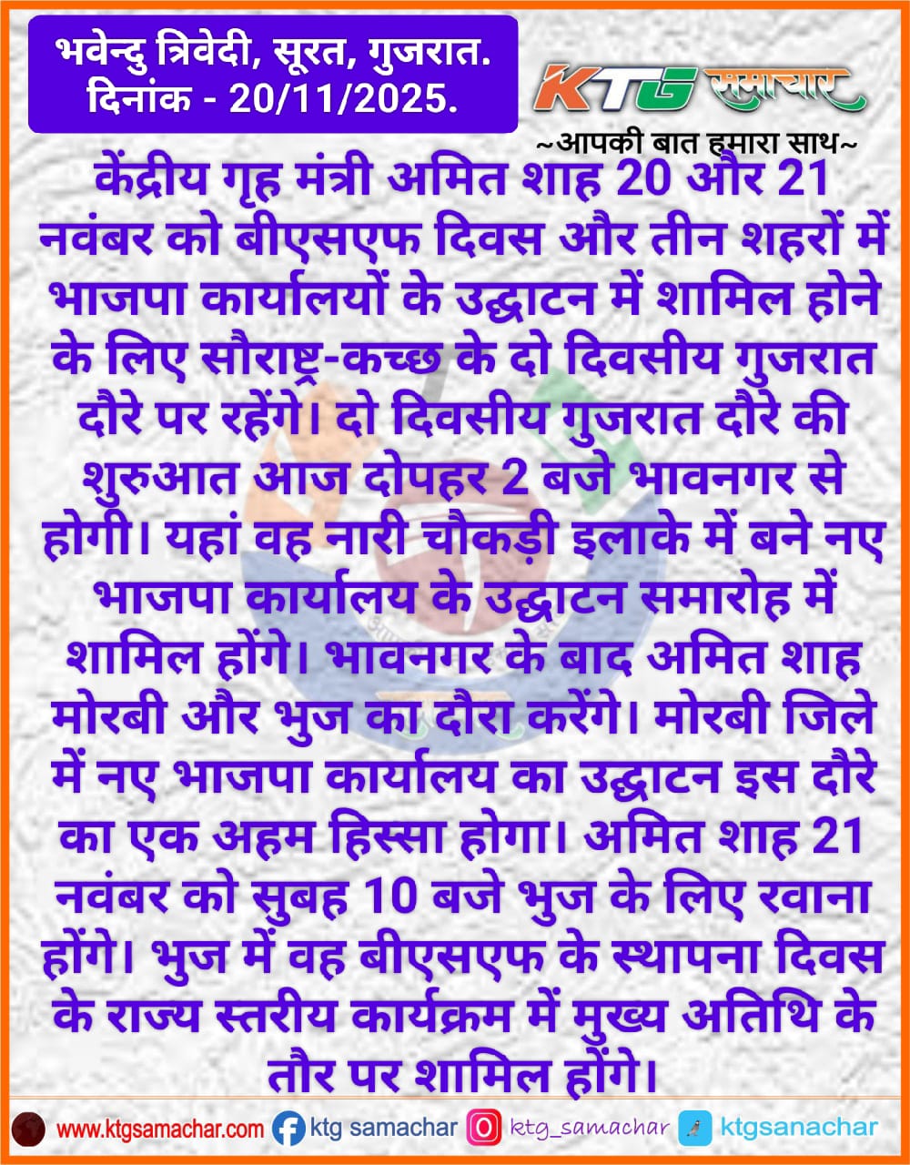 केंद्रीय गृह मंत्री अमित शाह आज से दो दिवसीय गुजरात के दौरे पर।