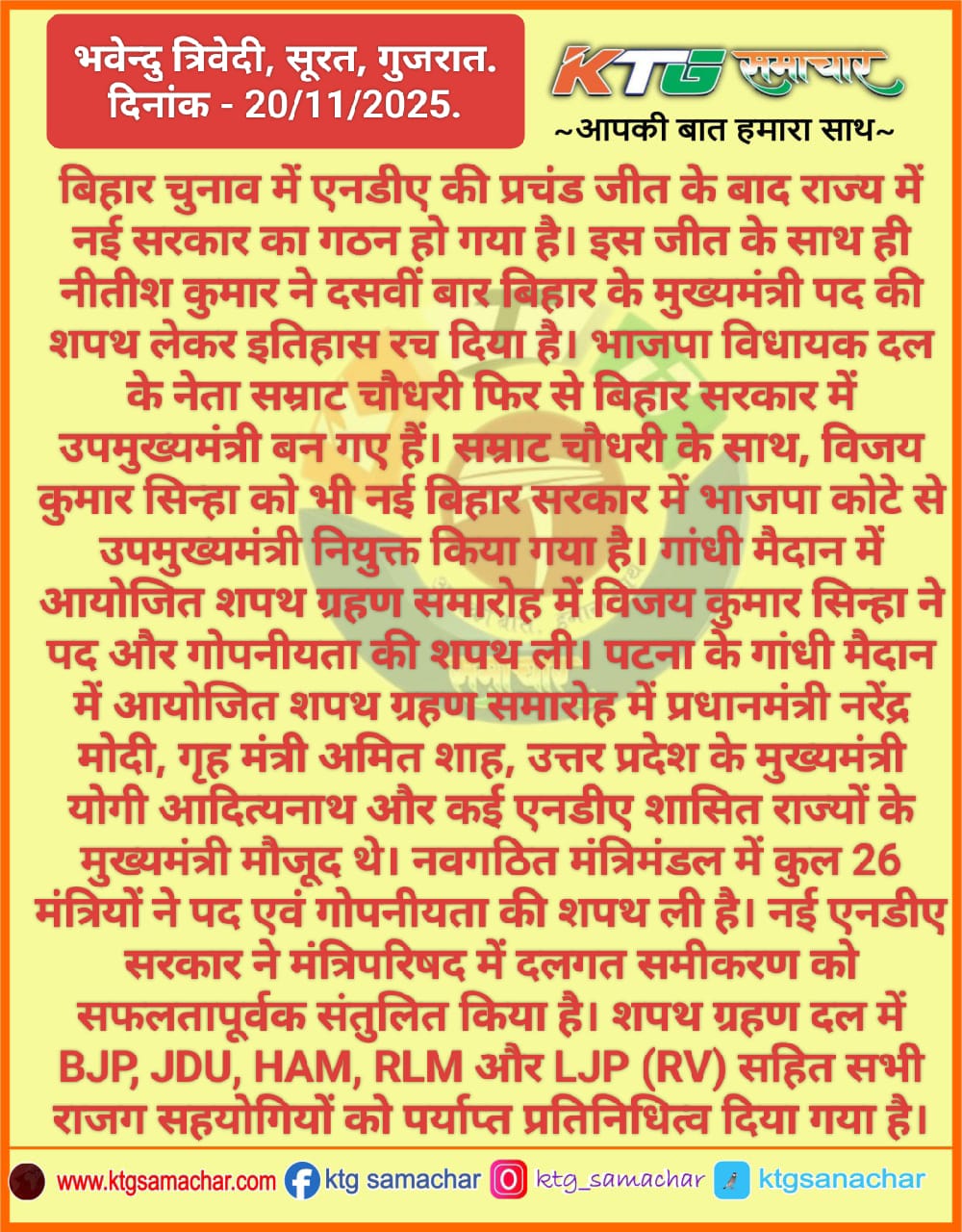 बिहार चुनाव में एनडीए की प्रचंड जीत के बाद राज्य मे नई सरकार का गठन हो गया है।