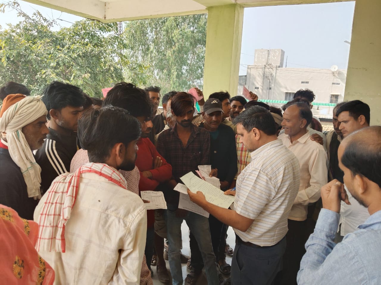 चौथ का बरवाड़ा उपखंड मुख्यालय पर रोज किसान खाद को लेकर चिंतित है किसानों को नहीं मिल रहा है सहकारी समितियों में खाद ।डीलरो के लगाने पड़ रहे हैं चक्कर।आज सुबह जैसे ही खाद की गाड़ी आने की खबर गावो में फैली किसान सैकड़ों की संख्या में उमड़ पड़े।डीलर की दुकान पहुंचकर लाइन से अपनी पर्ची बनवाई और गोदाम पहुंचे जब तक सैकड़ों किसान आ पहुंचे तो डीलर गोदाम बंद कर चला गया गुस्साए किसान तहसील कार्यालय आ पहुंचे ज्ञापन देने ।तहसीलदार नीरज सिंह को दिया ज्ञापन ।नीरज सिंह ने तुरंत कृषि अधिकारी से की बात ओर किसानों को दिया आश्वासन खाद सभी को मिलेगा ।तुरंत अधिकारी को सभी को बाटे खाद ।जब जाकर किसान खुश होकर तहसीलदार नीरज सिंह को बताया व्यक्तित्व का धनी ।सभी किसानों ने तहसीलदार का जताया आभार।