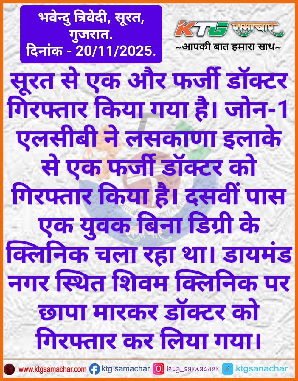 सूरत में एक और फर्जी डॉक्टर गिरफ्तार किया गया है।