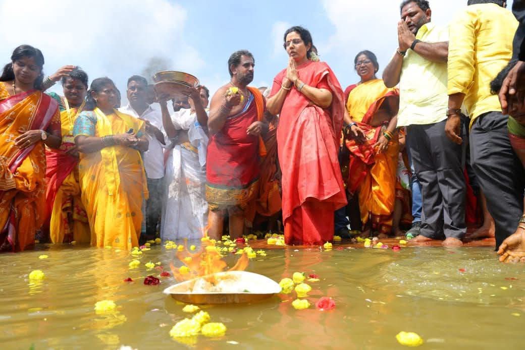 జలహారతి కార్యక్రమంలో పాల్గొన్న నారా భువనేశ్వ.🔥.