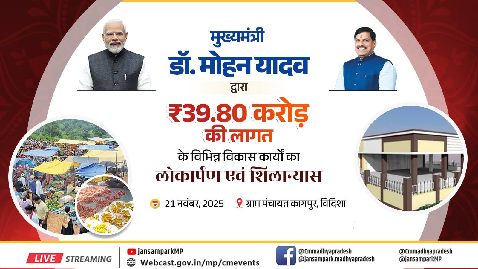 मुख्यमंत्री डॉ. मोहन यादव द्वारा ₹39.80 करोड़ की लागत के विभिन्न विकास कार्यों का लोकार्पण एवं शिलान्यास