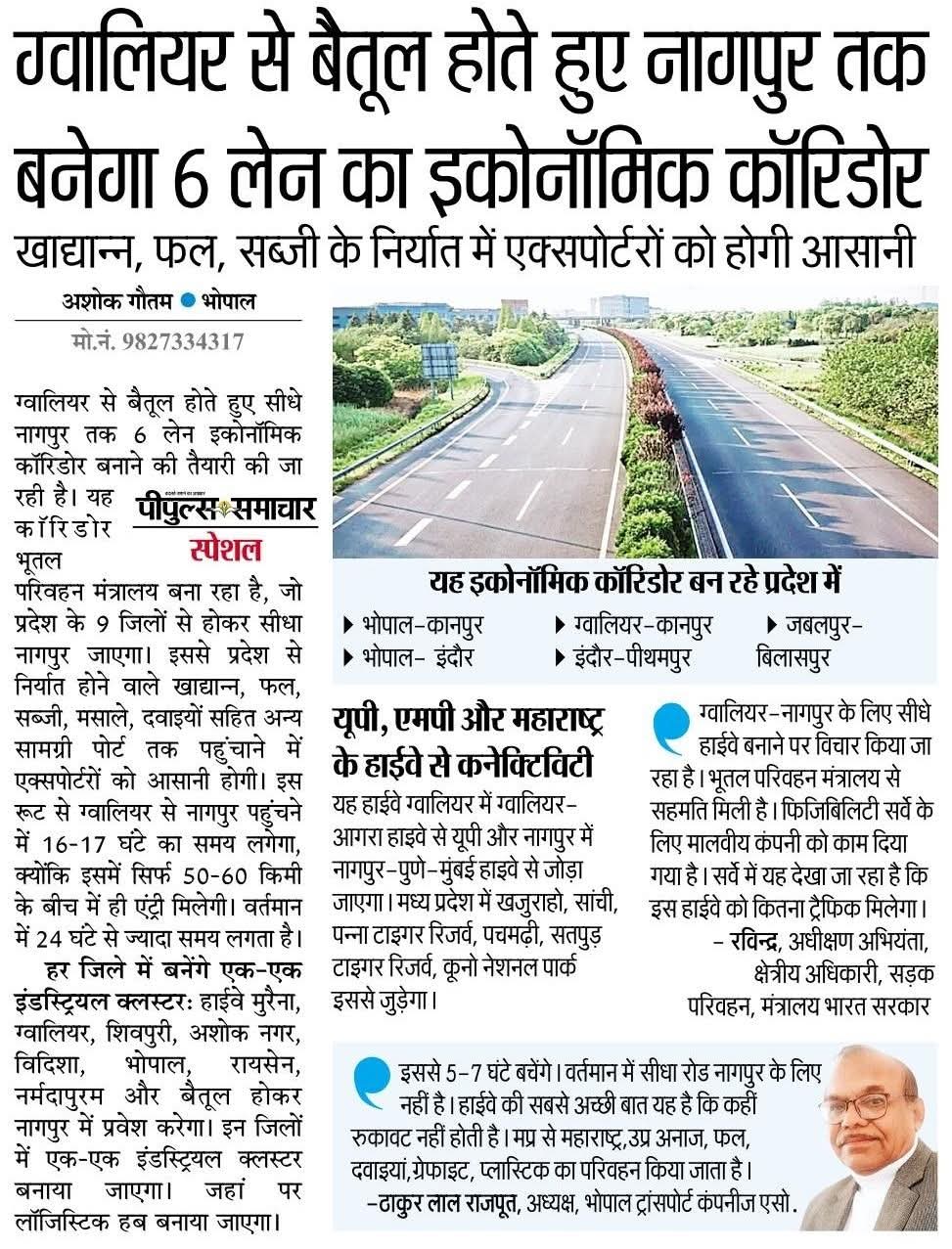 ग्वालियर से बैतूल होते हुए नागपुर तक बनेगा 6 लेन का इकोनॉमिक कॉरिडोर#JansamparkMP
