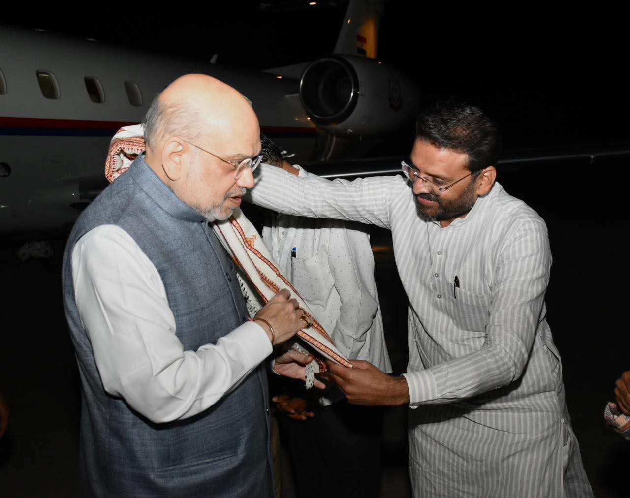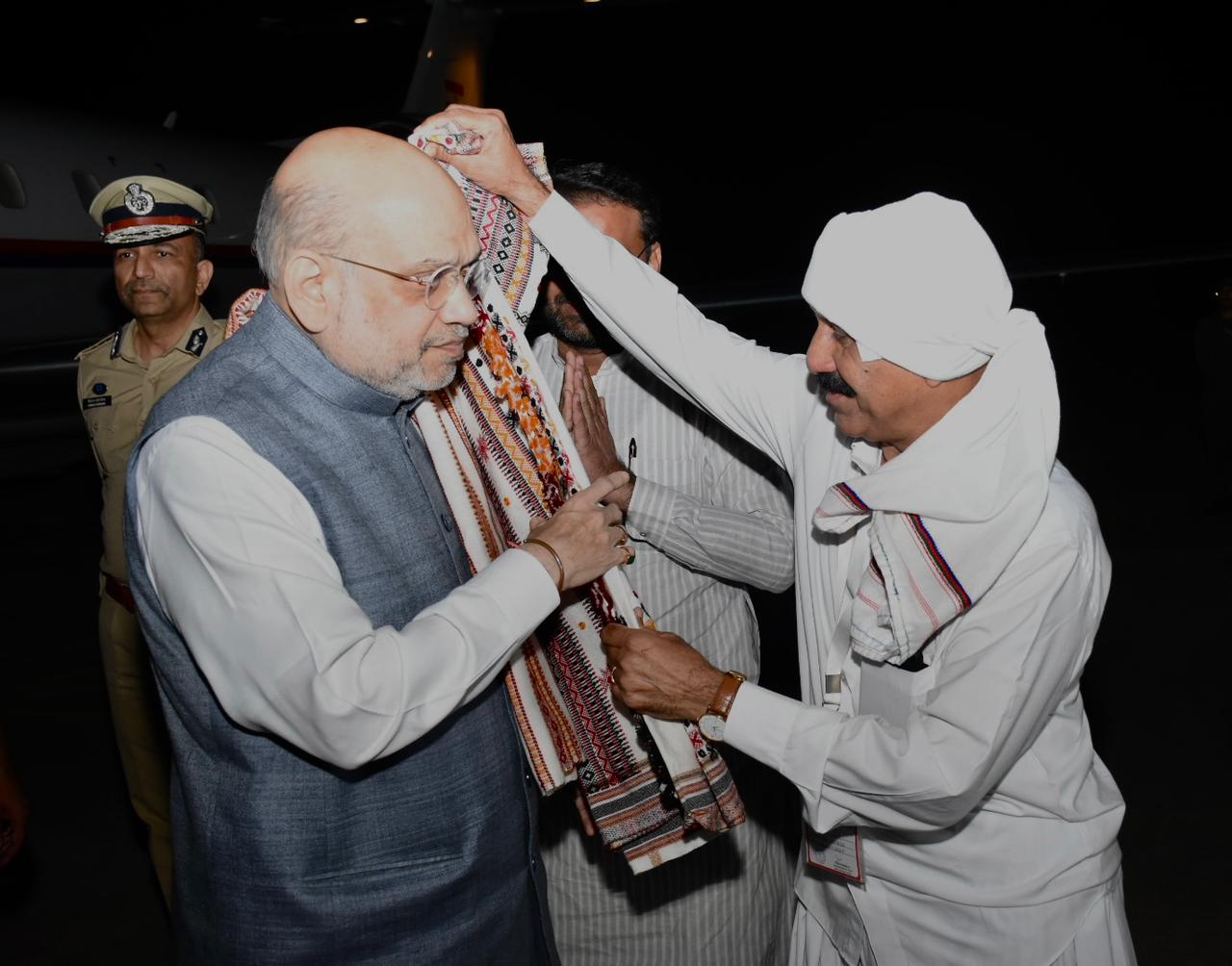 FTN KUTCH દેશના ગૃહ મંત્રી અમિત શાહ કચ્છ આવી પહોંચ્યાનાયબ મુખ્યપ્રધાન હર્ષ સંઘવી અને કચ્છ મોરબી ના સાંસદ વિનોદભાઈ ચાવડાએ એરપોર્ટ ખાતે સાલ ઉઢાડીને તેમનું સન્માન કરી આવકાર આપ્યોકચ્છ ના ધારાસભ્યો અધિકારીઓ પણ સાલ ઉઢાડીને તેમનું સન્માન કરી આવકાર આપ્યો